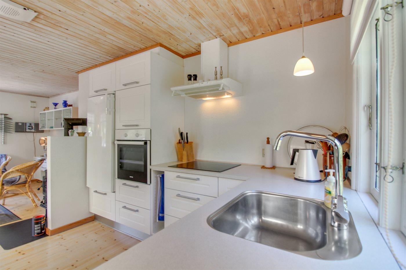 Herligt lille sommerhus i træ, hvor der ved indretningen er lagt vægt på hygge og velvære. Til huset hører et skønt terrasseareal med havemøbler, som indbyder til mange timer i det fri - i sær om aftenen vil I sætte pris på den del af terrassen, som er overdækket og kan lukkes til.