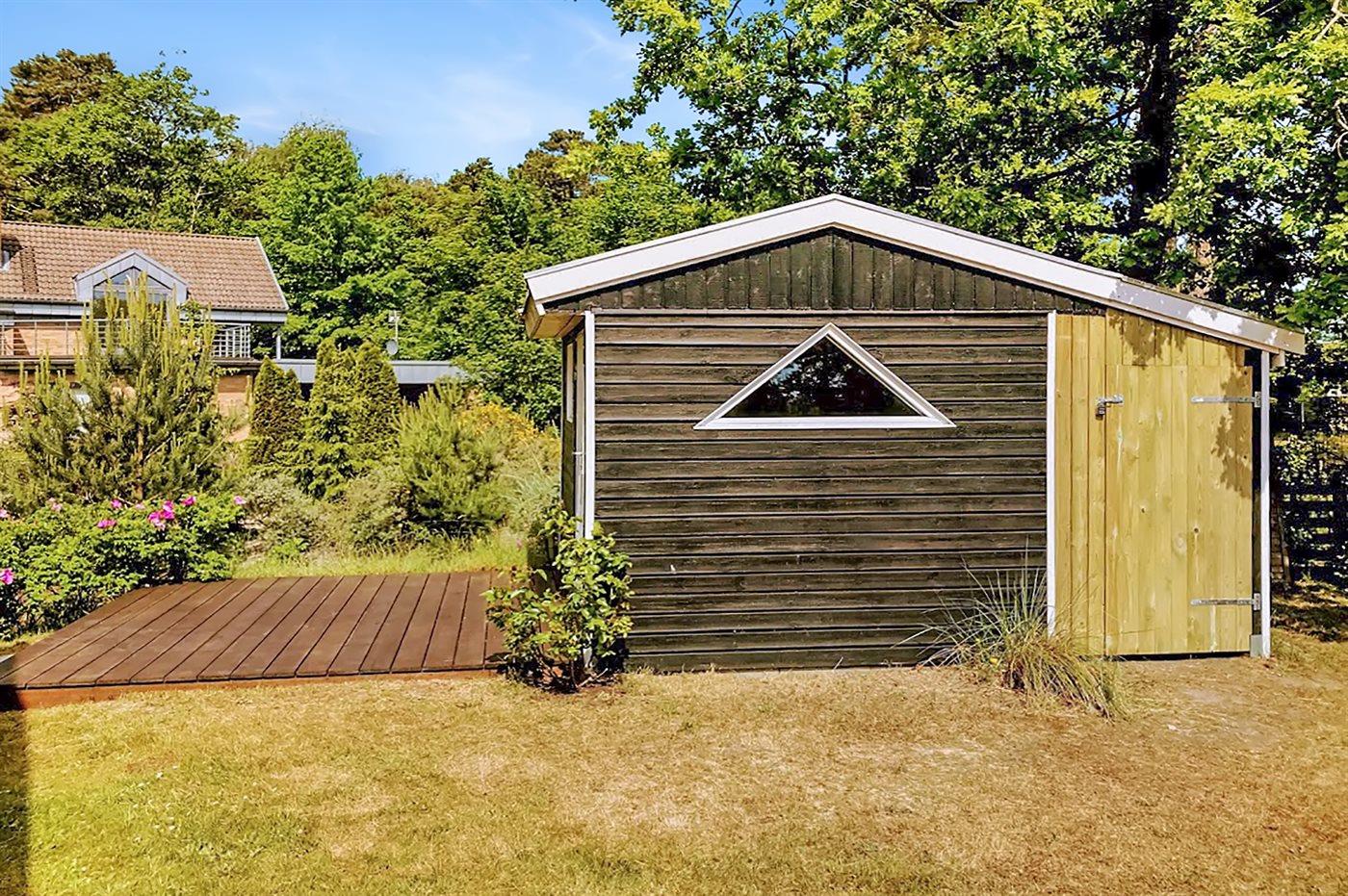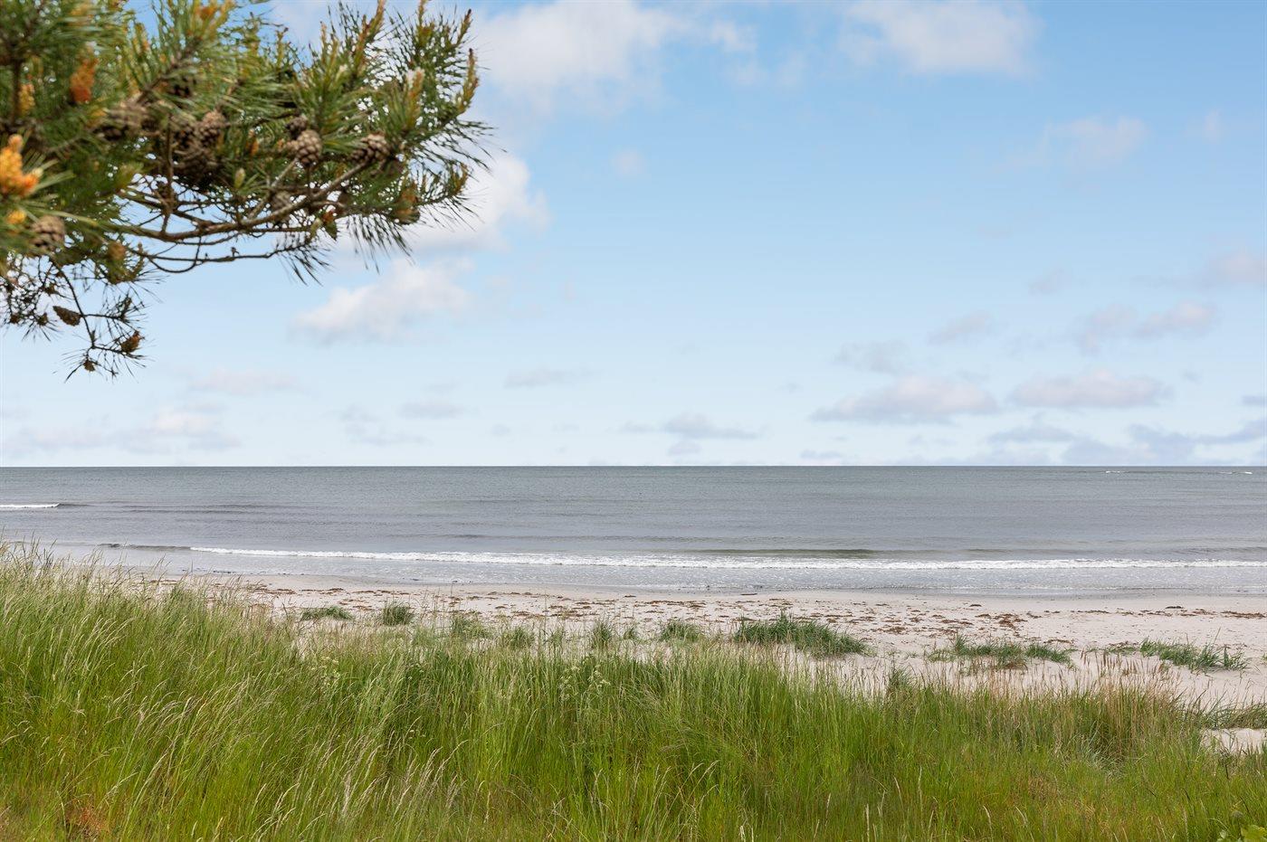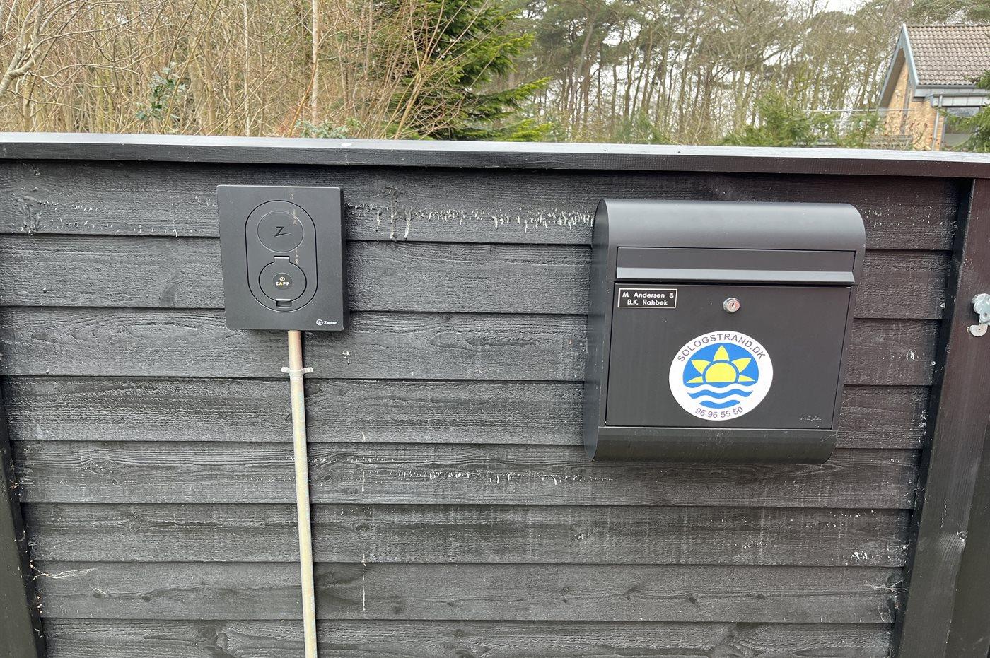 Ferieboligen er beliggende på en 230 m² stor havegrund. Grunden er indhegnet. Der er 100 m til havet. Nærmeste forretning er beliggende i en afstand af 500 m. Der er en golfbane i en afstand af 5700 m. Til ferieboligen hører 25 m² terrasseareal. Ligeledes er der adgang til udestue. Der er installeret stik til opladning af elbil. Type 2 stik. Med 22 kW ladeeffekt. Parkering ved ferieboligen.