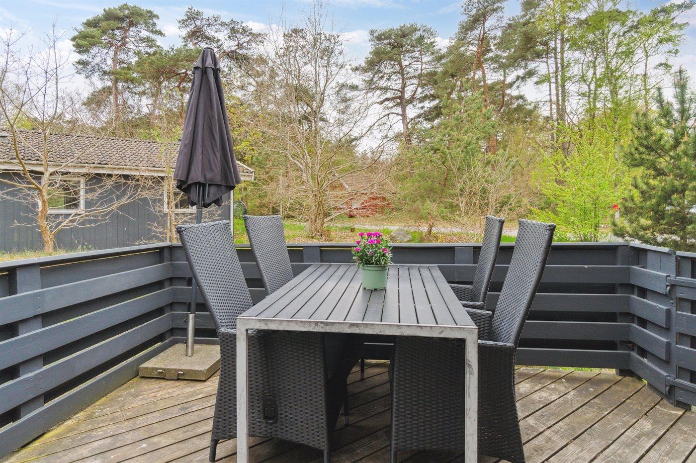 Husets to terrassen er lagt, så man kan nyde et kik ned til havet, når morgenkaffen indtages eller solen nydes senere på dagen.