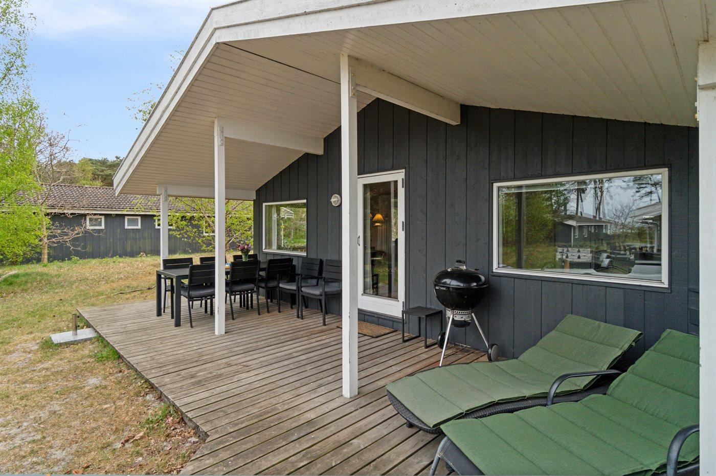 Ferieboligen er beliggende på en 150 m² stor naturgrund. Der er 60 m til havet. Nærmeste forretning er beliggende i en afstand af 500 m. Til ferieboligen hører åbent terrasseareal. Desuden er der overdækket terrasse. Grill til rådighed. Parkering ved ferieboligen.