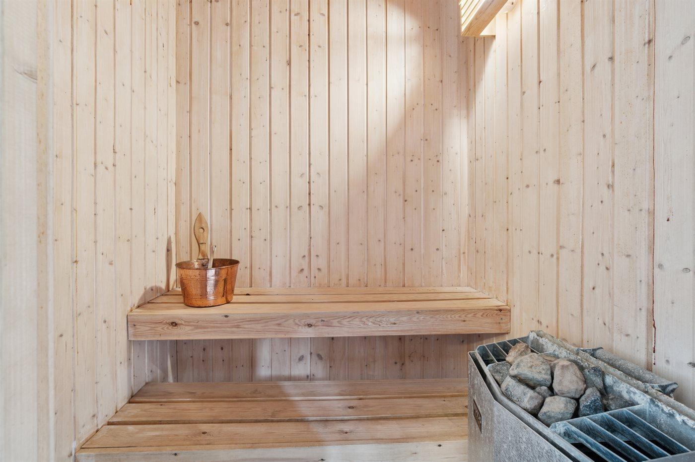 Der er 1 badeværelse med bruseniche og 2 toiletter, heraf 1 gæstetoilet. Der er gulvvarme på 1 badeværelse. I saunaen er der mulighed for afslapning.