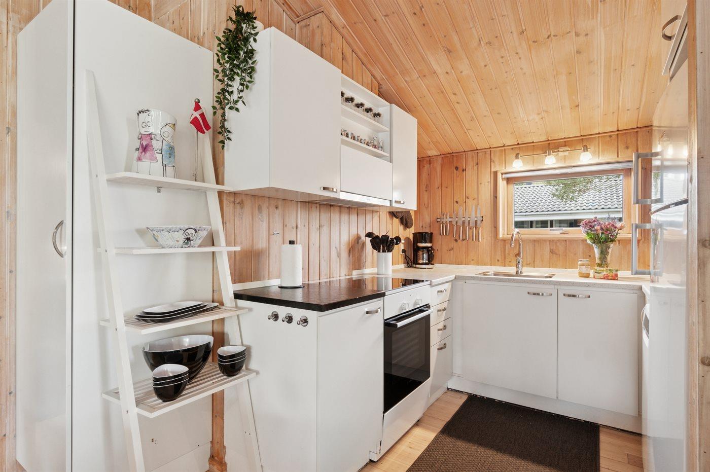 Køkkenet er udstyret med 1 køleskab. Der er 4 induktionskogeplader, varmluftovn, mikrobølgeovn samt opvaskemaskine.
