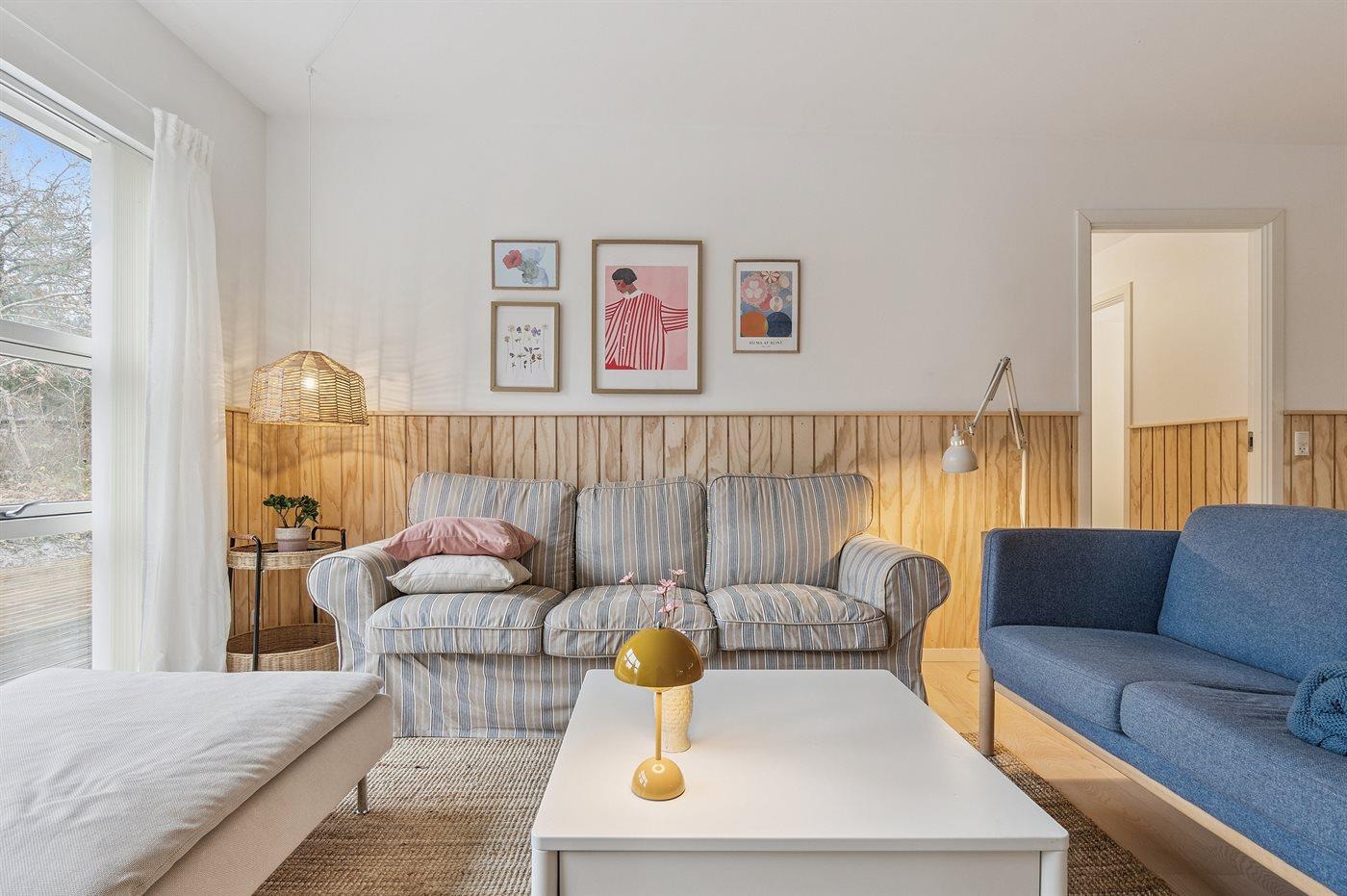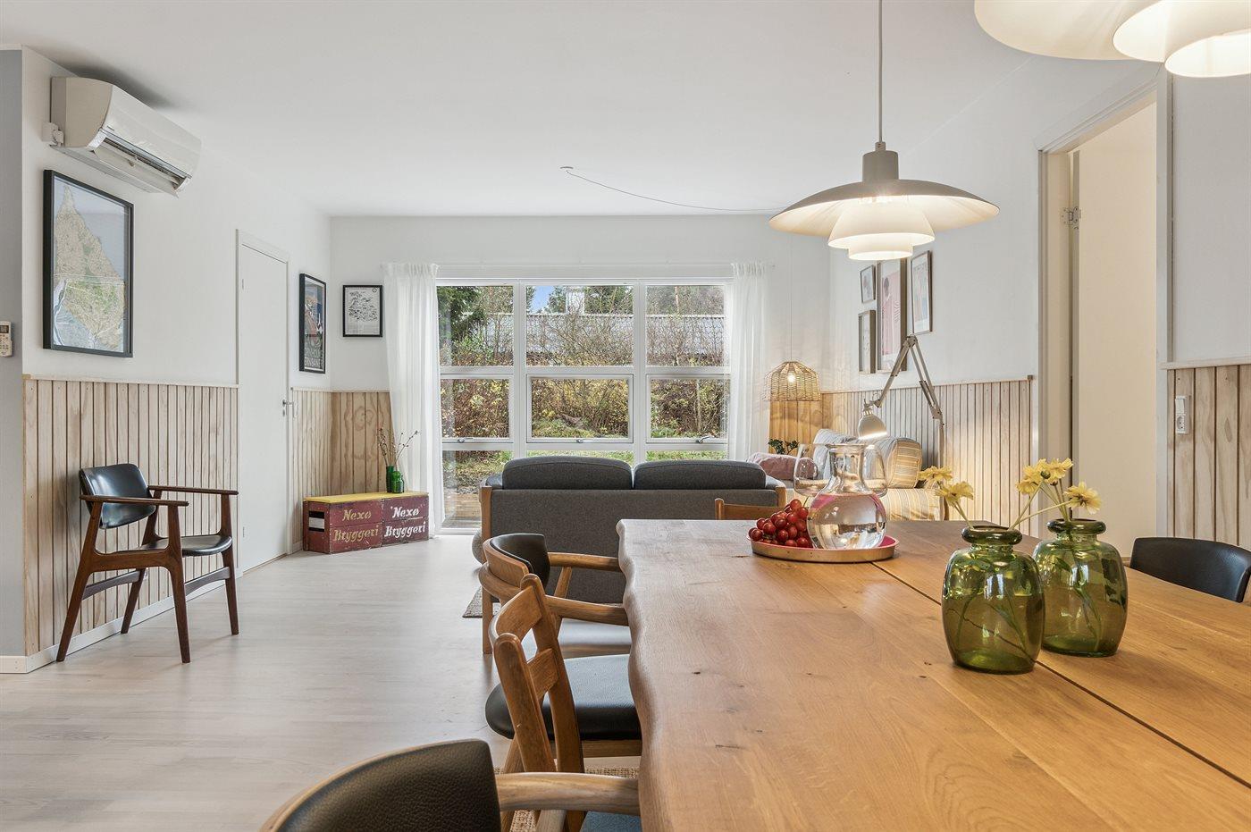 Moderne indrettet feriehus med virkelig god beliggenhed nær sandstranden syd for Snogebæk i et fredeligt og ugeneret område. Den store grund er omgivet af træbevoksning, så man føler sig hengivet til sin helt egen verden.