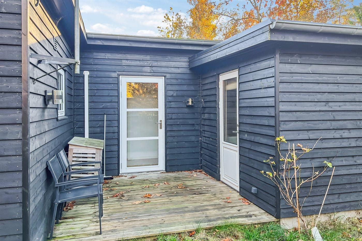 Moderne feriehus med stor terrasse og fredelig beliggenhed nær sandstrand i Snogebæk.
