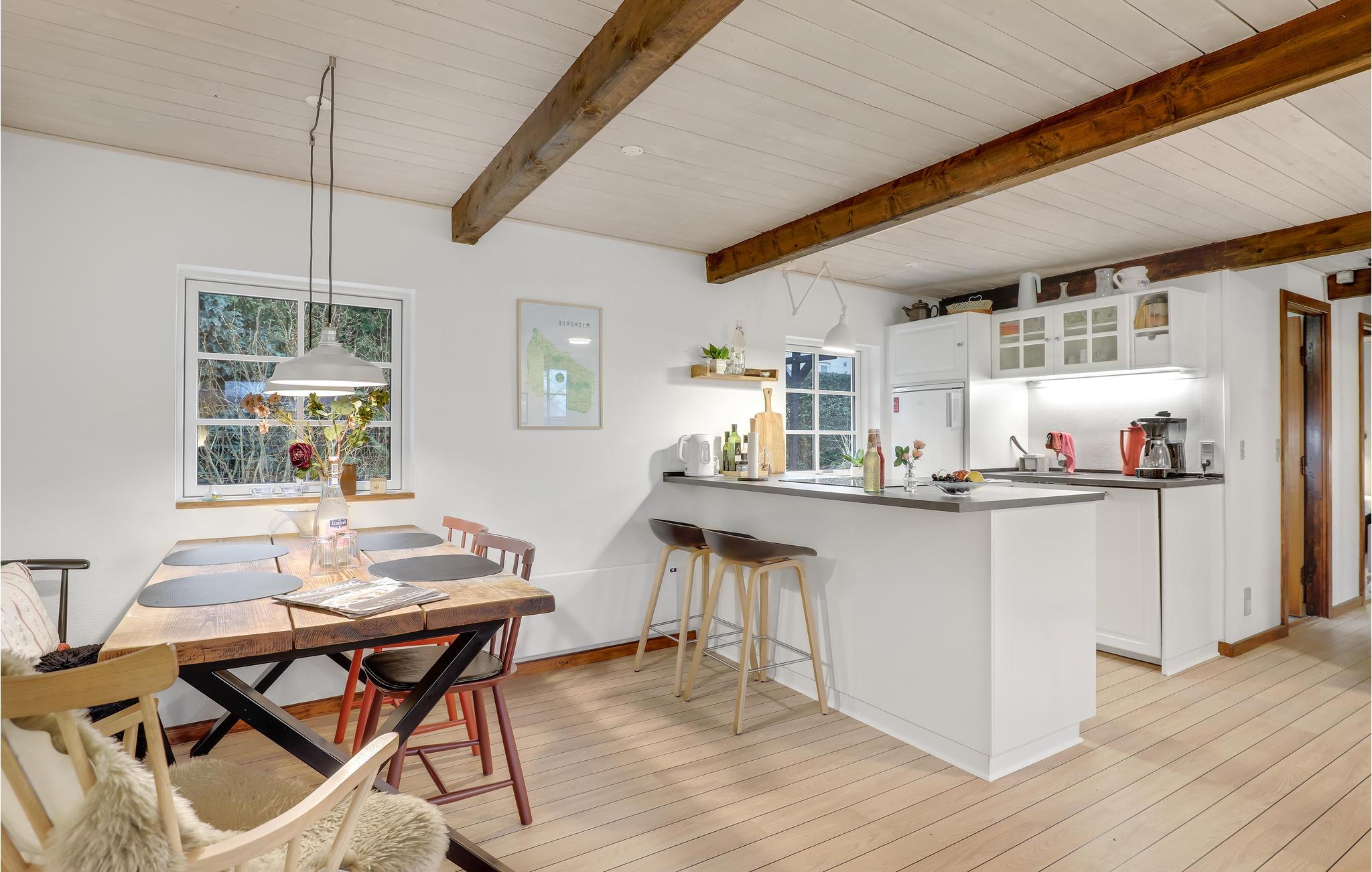 Udnyt ejendommens beliggenhed og udforsk havnen, der ligger 100 meter væk, hvor I har gratis adgang til både bad og sauna. Det lokale røgeri ligger også yderst tæt på. Glæd jer til at tage ud og spise i de lokale restauranter og nyde det bornholmske køkken. Hvis I udforsker øen med offentlig transport, er der et busstoppested i nærheden. Området indbyder også til fantastiske cykelture. I kan også blot tilbringe afslappende dage på den hvide strand, som nærmest ser caribisk ud på grund af det lave vand og lyse sand. Byg sandslotte og bad i vandet med jeres børn og nyd tiden.