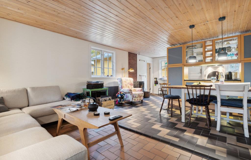 Der er dejligt stille for enden af den lille grussti, som fører til dette sommerhus. Her kan man i dén grad sætte hverdagen på pause, nyde grundens naturskønne omgivelser og lyden af fuglefløjt foroven. Huset har en dejlig atmosfære med fine retrodetaljer og gode faciliteter. Sæt en grammofonplade på, mens I hygger jer med madlavningen, og mærk freden sænke sig, mens I sidder med hver jeres bog rundt om brændeovnen på en kølig dag. På terrassen kan I nyde solen på de lune dage og dække op til en frokost i skyggen. Der er ekstra sovepladser i annekset.