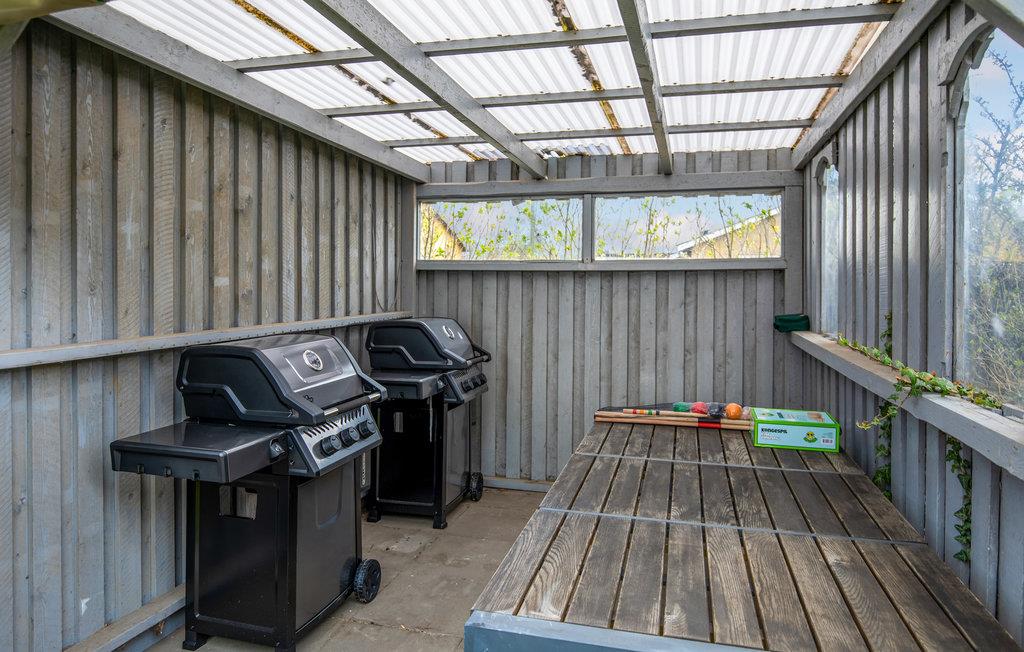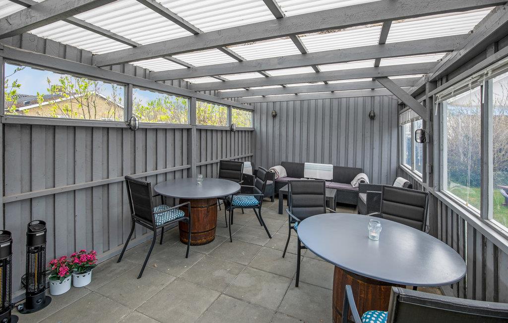 Udenfor har I adgang til en fælles gårdhave med have, grill og havemøbler. Her kan I slappe af, når solen skinner og nyde sommeraftenerne med lækre måltider under åben himmel.