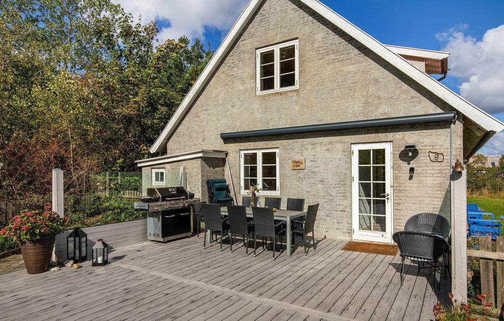 Til huset hører en skøn, delvist overdækket træterrasse med havemøbler og en gasgrill, så I kan tilberede lækre grillretter. Her er både liggestole og flere solbænke på husets havvendte side, så I har mange behagelige steder at vælge mellem til at nyde solen og den friske havluft. En stor græsplæne med god plads til leg og boldspil fører lige ned til stranden, så I kan gå fra huset og hoppe i bølgen blå på få minutter.