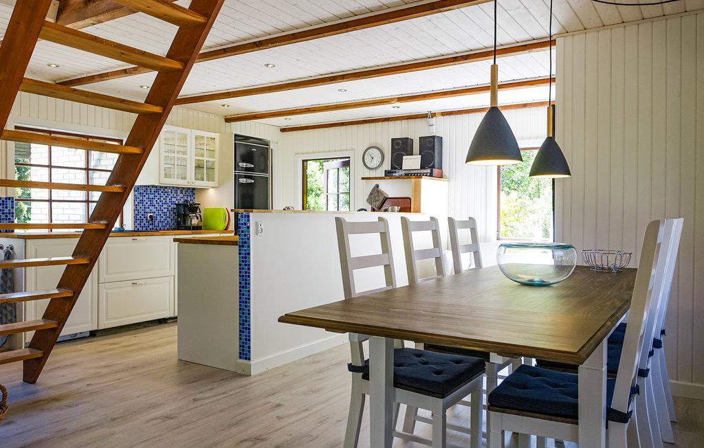 Her får I nogle skønne feriedage, uanset om sæsonen er til indendørshygge eller sol i haven. I opholdsstuen kan I tænde op i brændeovnen på kølige dage og give jer god tid til madlavningen i køkkenet, mens børnene slapper af i de bløde møbler.