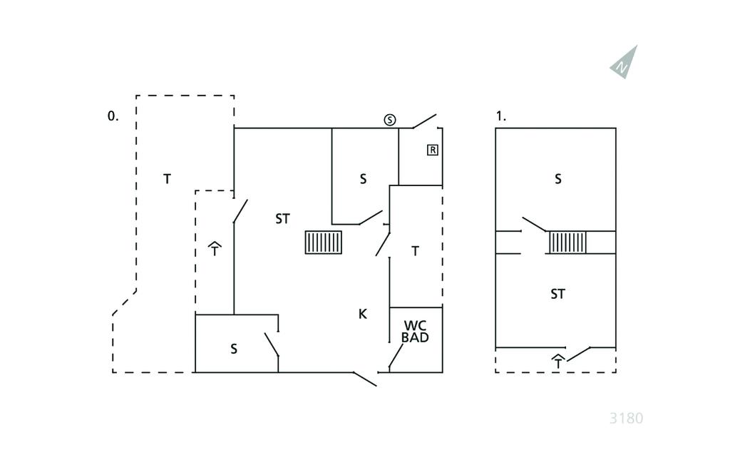 Soveværelse (nr. 1) - 2 Sovepladser. (Enkeltseng(e)).