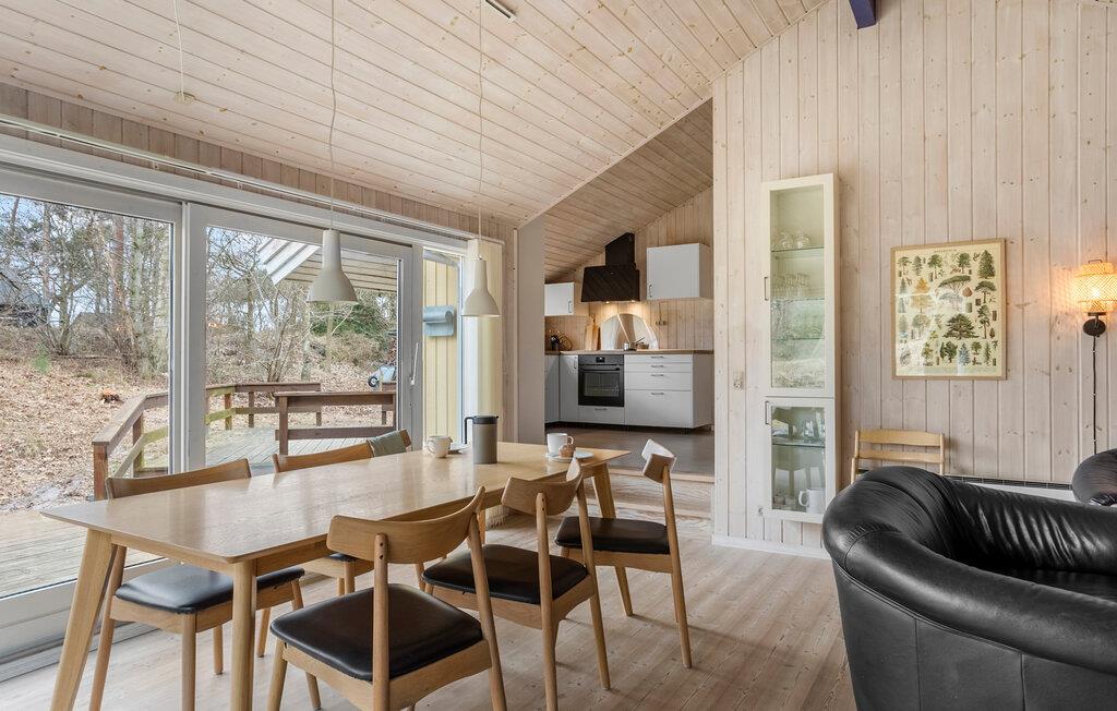 I kan se frem til nogle herlige feriedage med base i dette hyggelige sommerhus, som er placeret på en stor naturgrund i Snogebæk. Her får I naturskønne rammer og nem adgang til havet, så feriestemningen kommer helt af sig selv. Sammensæt en skøn middag i det rummelige køkken og dæk op på spisebordet, hvor I kan glæde jer over udsigten til de grønne omgivelser, mens I er samlet om maden.