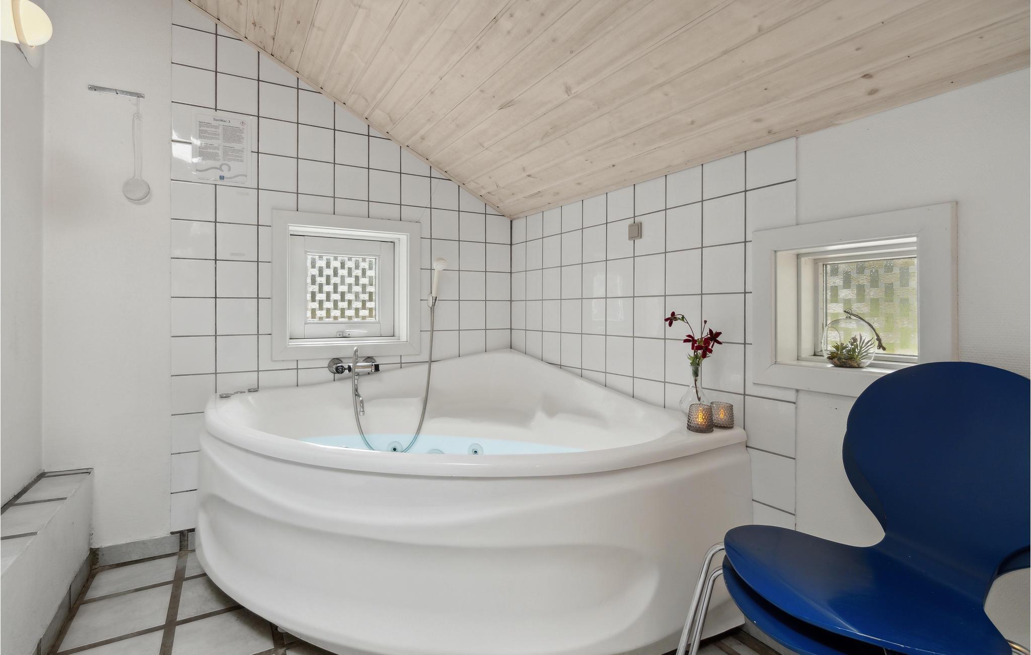 Hyggeligt feriehus nær Dueoddes sandstrand med spabad, sauna og moderne faciliteter i smukke naturomgivelser.