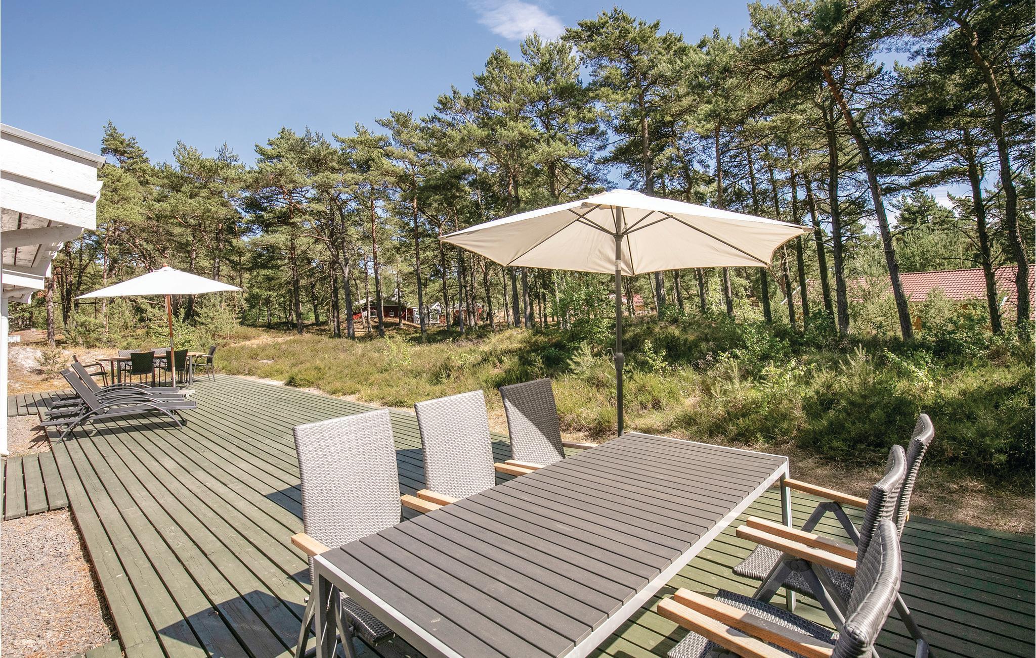 Huset er indrettet med komfortable og moderne møbler, et skønt og veludstyret, åbent køkken samt kombineret spise-/opholdsstue med brændeovn. Fra opholdsstuen er der udgang til en dejlig stor træterrasse, hvor I kan nyde de afslappende feriedage. Forkæl jer selv i dette skønne feriehus, den store åbne terrasse, saunaen og den flotte natur. Huset er velegnet til ferieophold året rundt.