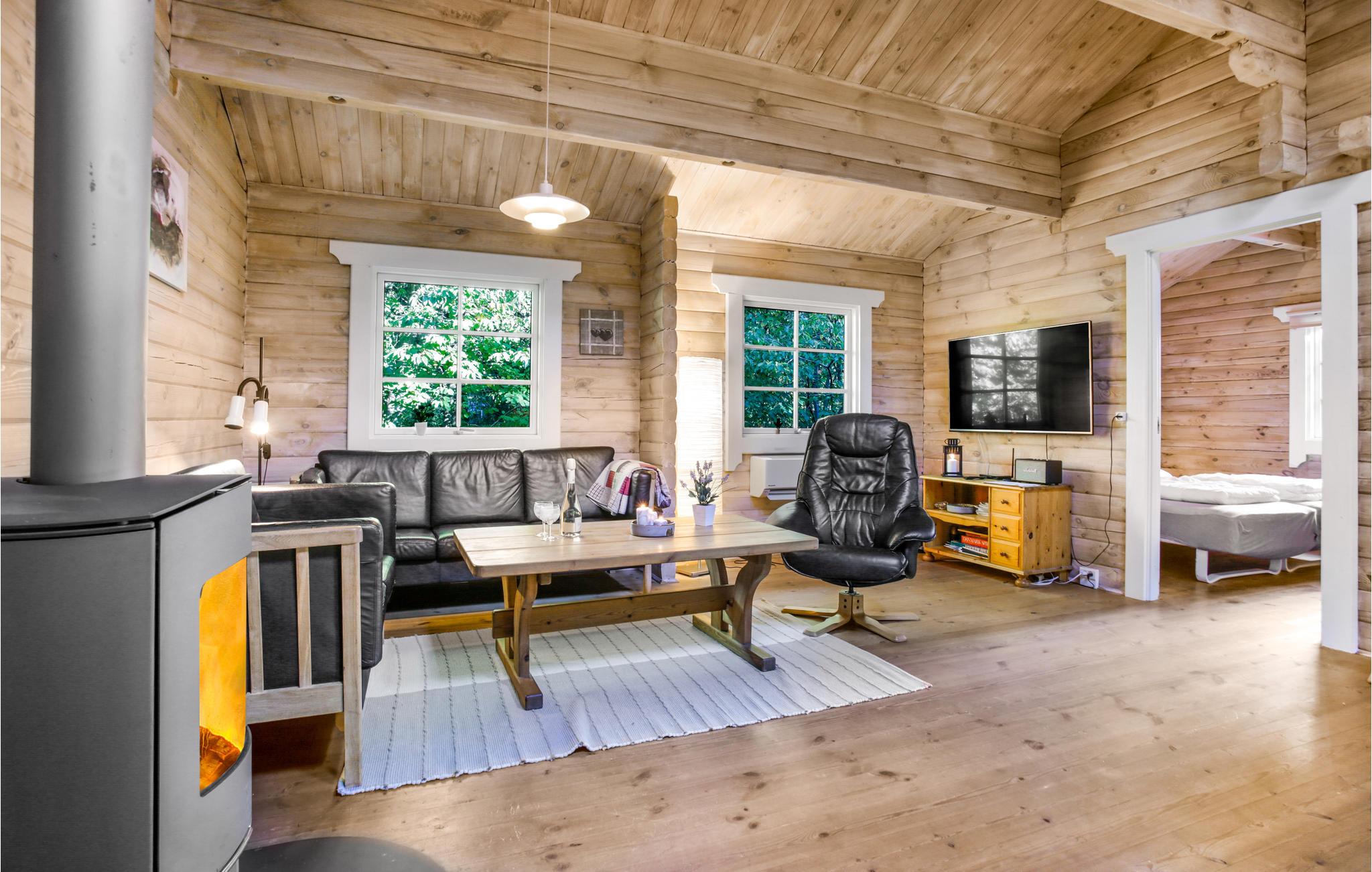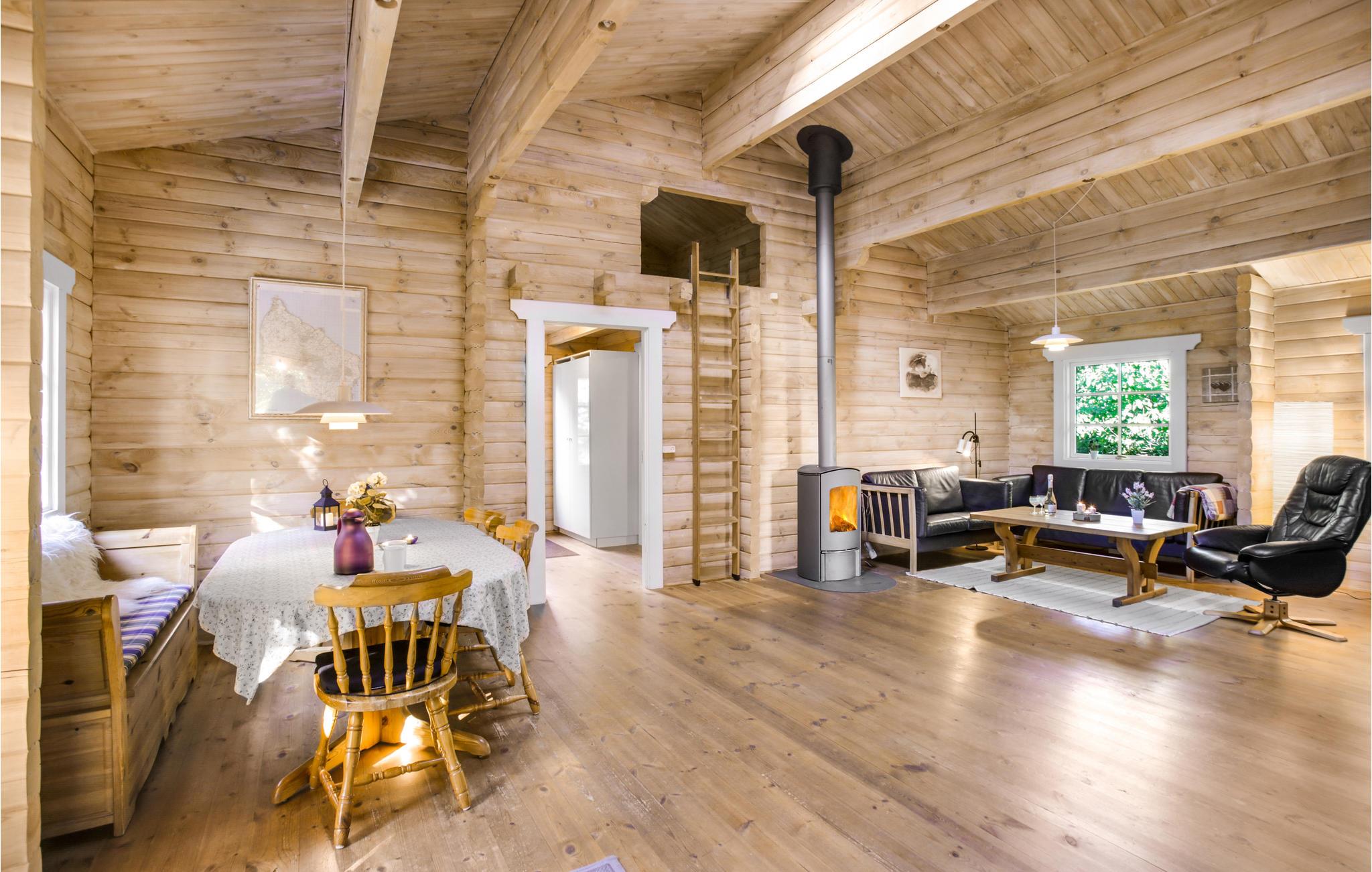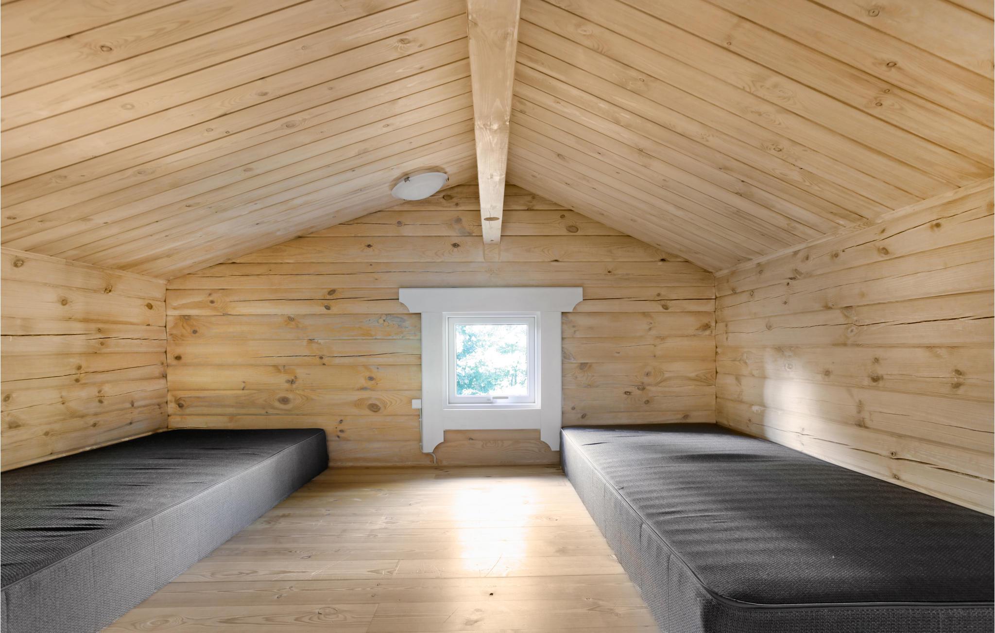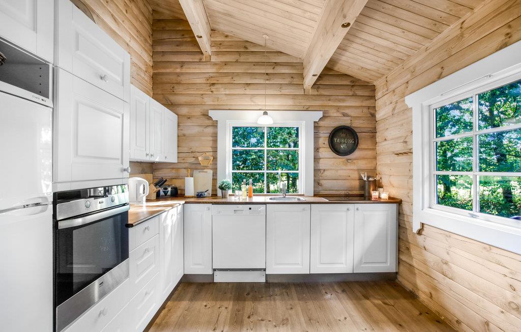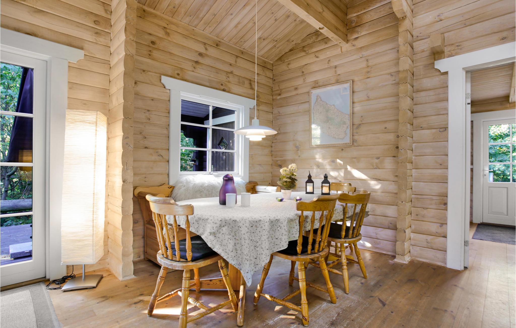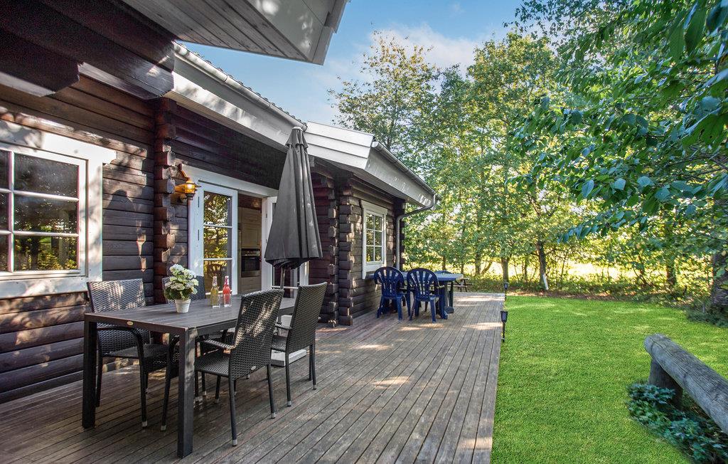 Dejligt bjælkehus med hyggelig atmosfære og mange moderne faciliteter. Det er lyst og venligt indrettet med et flot og veludstyret køkken, hvor I kan tilberede mange måltider i et rart og sundt indemiljø. I dette flotte, rustikke feriehus er der bl.a. to hemse, hvoraf den ene bruges til overnatning. Den anden er velegnet som legeplads for børnene. Et stort luksusbadeværelse med gulvvarme og spabad gør ferien endnu mere komfortabel. Huset ligger på en åben naturgrund med udsigt til de åbne marker og er omgivet af en dejlig stor træterrasse. På grunden løber en lille å. Der er ikke langt til Hasle Lystskov, cykelstier og en god badestrand. Huset er helårsegnet.