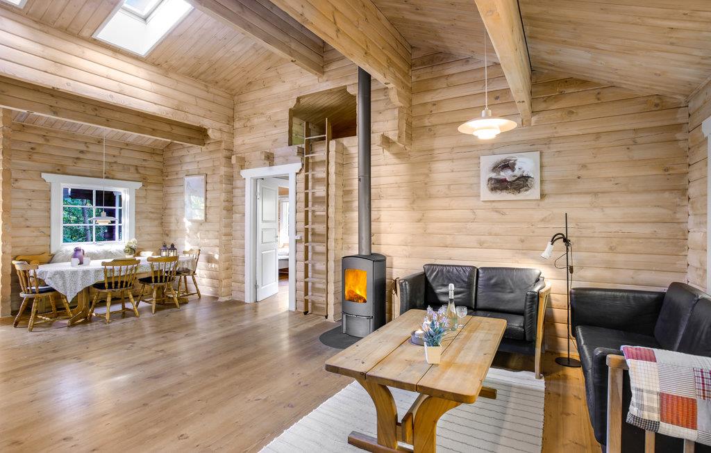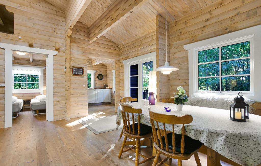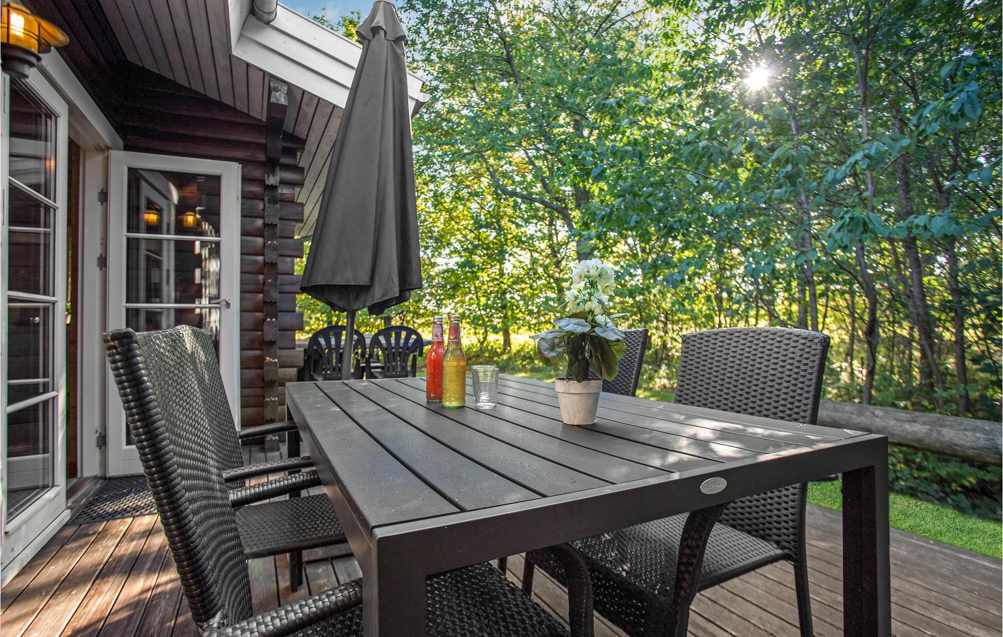 Hyggeligt bjælkehus med spabad og stor terrasse