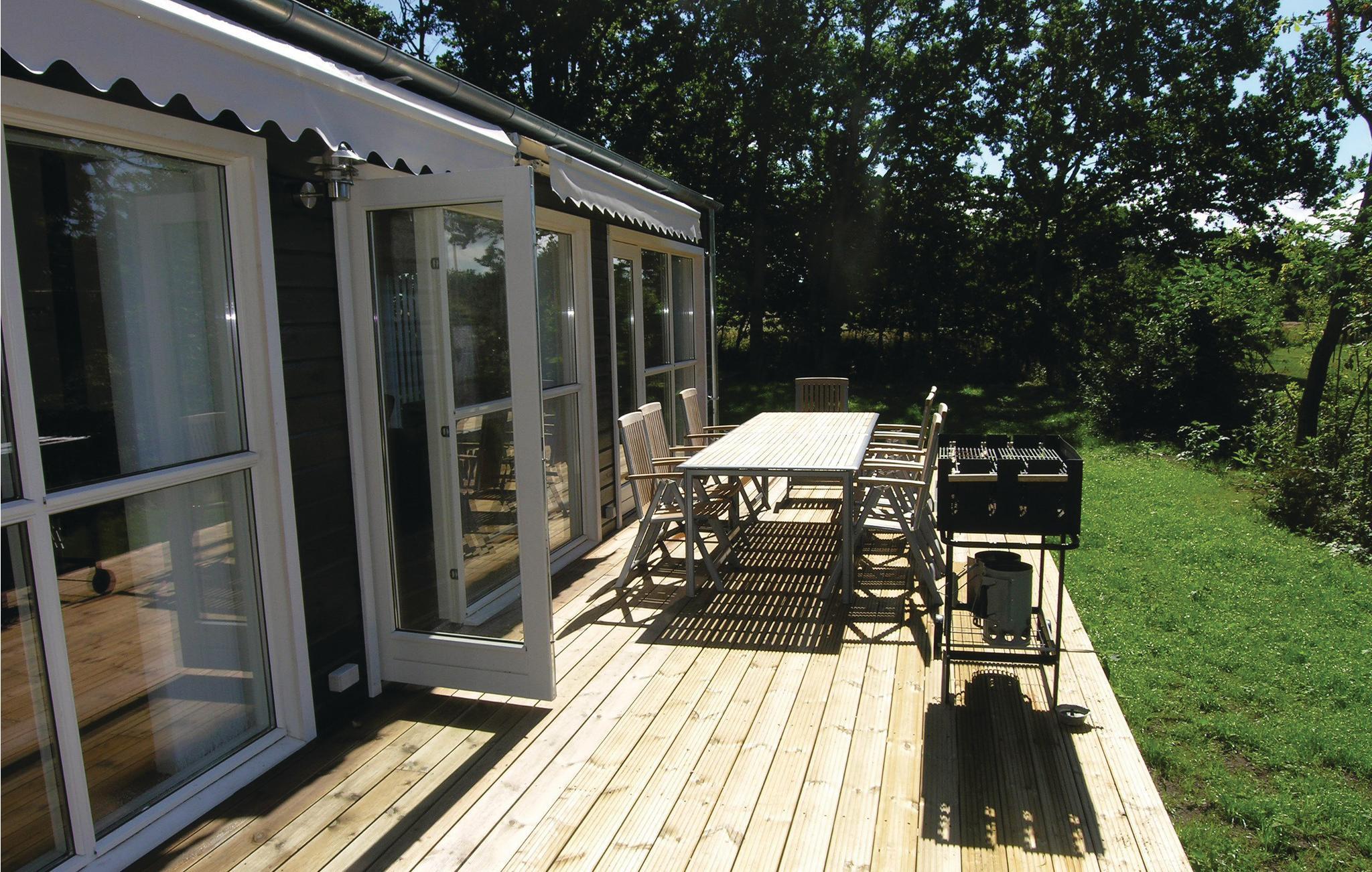 Flot luksushus i dejlig natur og rolige omgivelser ikke langt fra Hasle Lystskov med gode vandrestier, cykelstier og en glimrende sandstrand. Huset er bygget i førsteklasses materialer, er lyst og moderne indrettet og har god plads til to familier. Der er to flotte badeværelser med gulvvarme, hvoraf det ene er indrettet med et lækkert spabad og det andet et dampbad. Dette skønne luksushus indeholder også fire flotte soveværelser. Fra det dejlige og veludstyrede, åbne køkken er der adgang til en stor og velindrettet opholdsstue med gode møbler og brændeovn. Fra stuen har I udsigt til naturen og direkte adgang til en dejlig, stor træterrasse, hvor I kan nyde mange gode feriestunder. Grunden grænser op til en lille å og de åbne marker. Husets høje komfort gør det velegnet til ferie året rundt.
