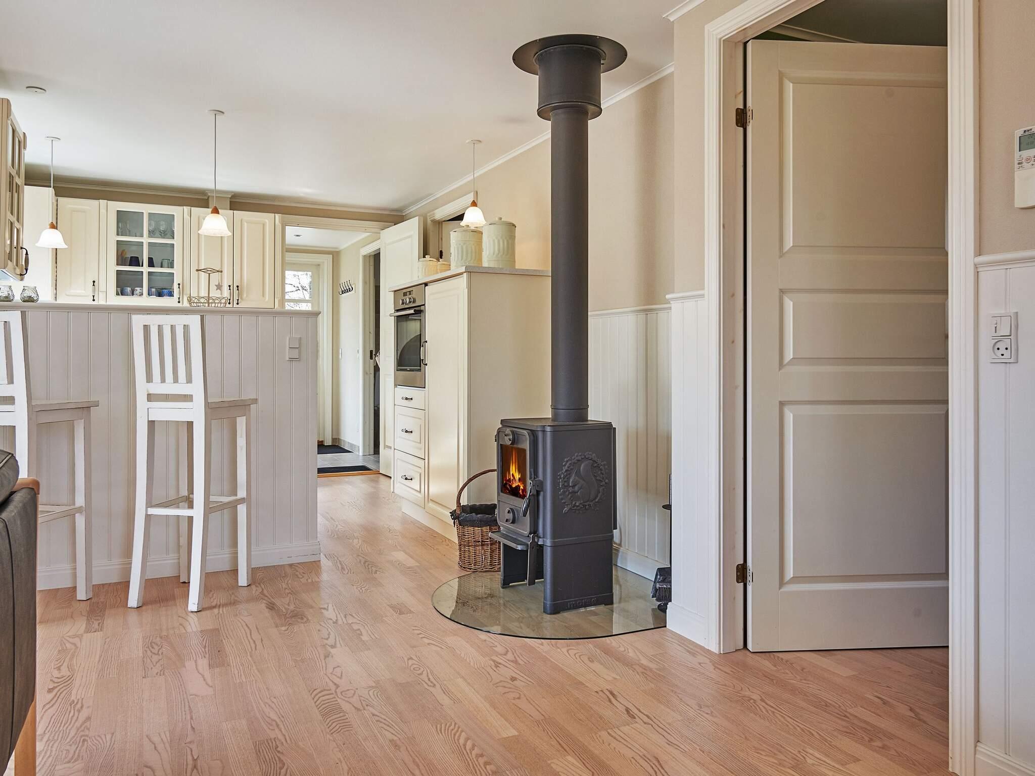 Huset rummer praktisk entré og bryggers med håndvask og vaskemaskine. Herfra har du adgang til et badeværelse med boblebad, perfekt til afslapning efter en aktiv dag. Det åbne køkken og opholdsstue er boligens hjerte, der byder på et lyst, veludstyret køkken, et spisehjørne og en hyggelig stue. En brændeovn og en energirigtig varmepumpe giver varme og komfort, mens de store vinduespartier giver dig mulighed for at nyde den omkringliggende natur.