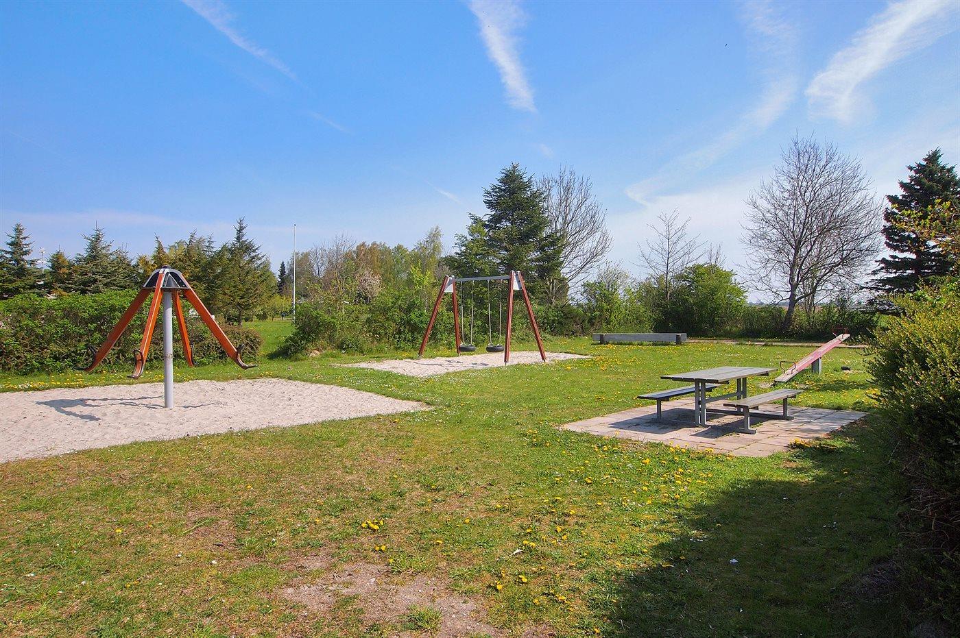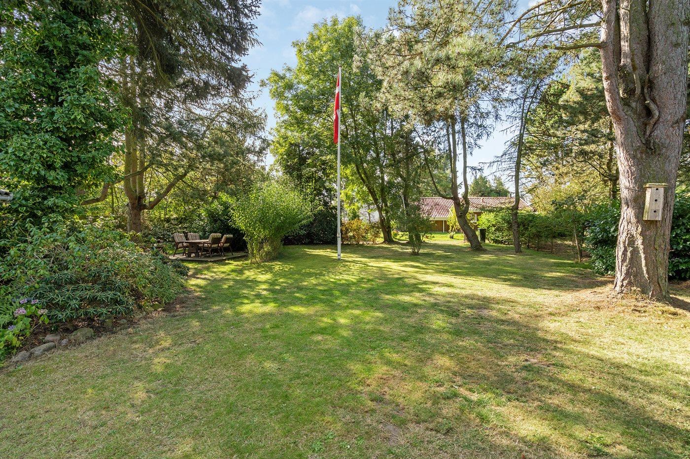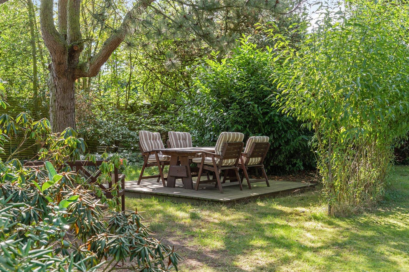 Ferieboligen er beliggende på en 1052 m² stor havegrund. Der er 120 m til havet. Nærmeste forretning er beliggende i en afstand af 6000 m. Til ferieboligen hører 30 m² terrasseareal. Desuden er der 28 m² overdækket terrasse. Udendørs bruser. Der er carport til rådighed. Der er installeret stik til opladning af elbil. Med 11 kW ladeeffekt. Parkering ved ferieboligen.