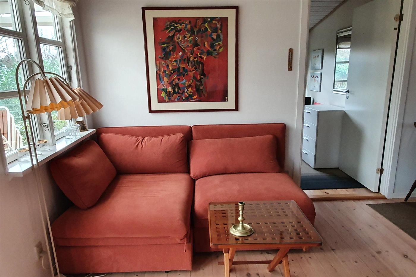 Hyggeligt sommerhus tæt på vandet med egen badebro og opladning til elbil.