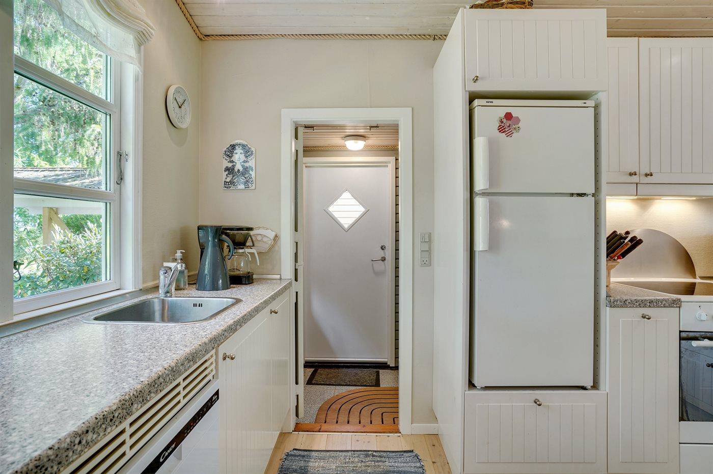 Køkkenet er udstyret med 2 køleskabe. Der er 4 keramiske kogeplader, varmluftovn, mikrobølgeovn samt opvaskemaskine.