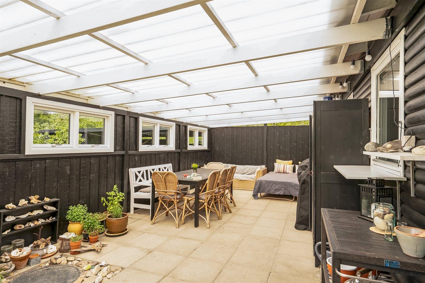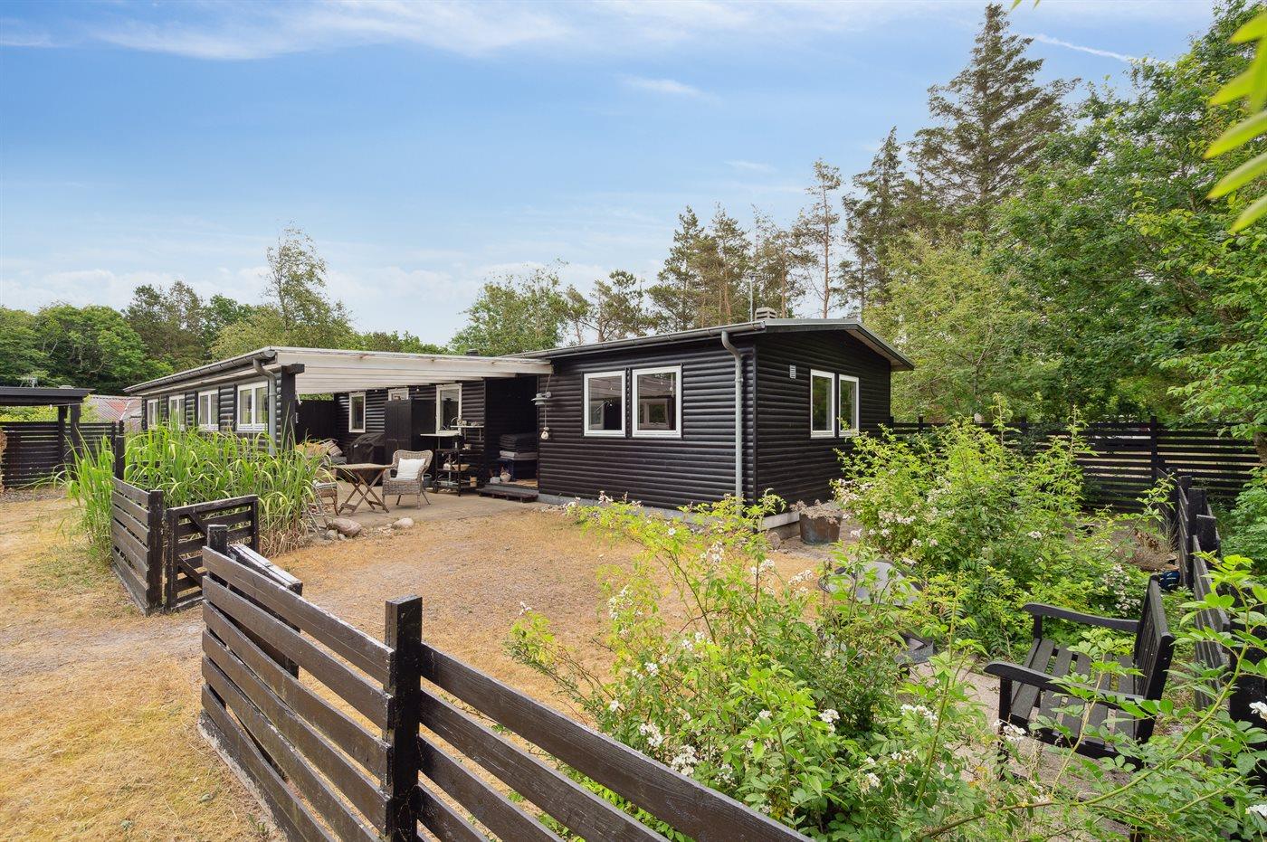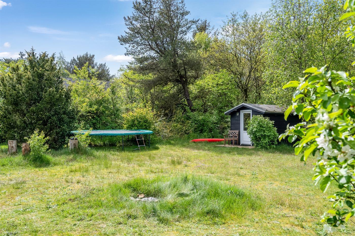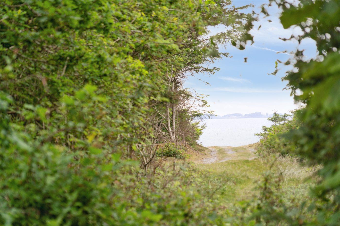 Ferieboligen er beliggende på en 1200 m² stor grund i skov/plantage. Der er 150 m til fjorden. Nærmeste forretning er beliggende i en afstand af 3200 m. Til ferieboligen hører åbent terrasseareal. Desuden er der overdækket terrasse. Der er installeret stik til opladning af elbil. Type 2 stik. Parkering ved ferieboligen.