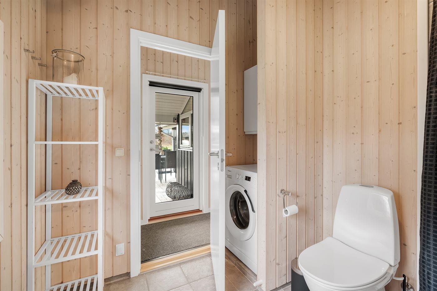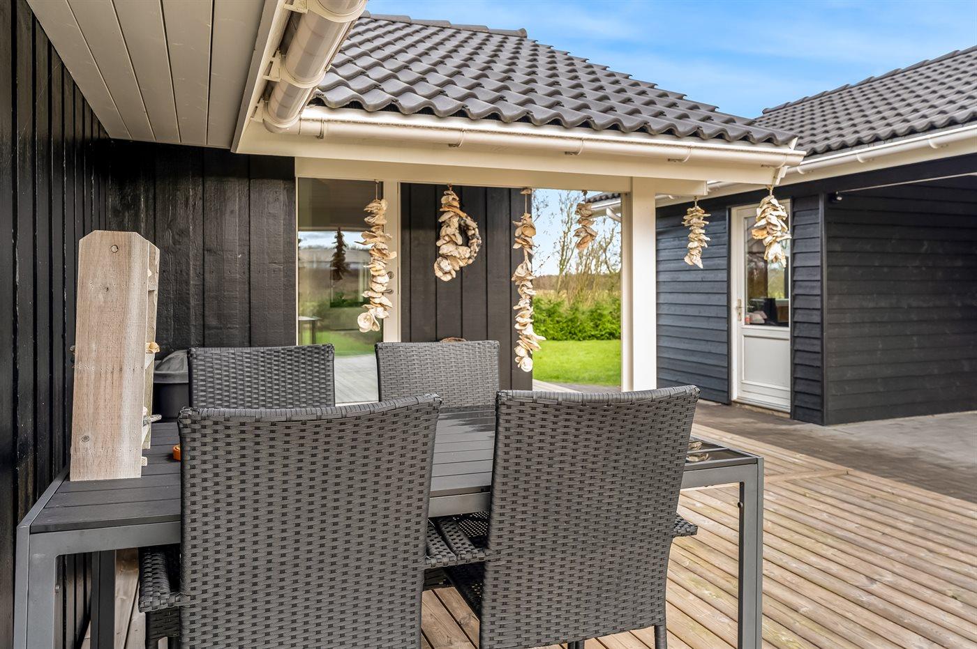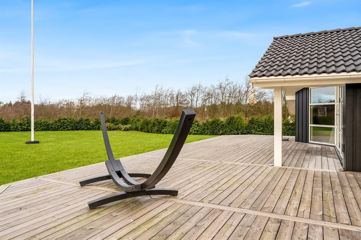 Ferieboligen er beliggende på en 2606 m² stor havegrund. Der er 500 m til fjorden. Nærmeste forretning er beliggende i en afstand af 3800 m. Til ferieboligen hører åbent terrasseareal. Desuden er der overdækket terrasse. Der er redskabsrum. Trampolin. Bålsted. Grill til rådighed. Der er garage til rådighed. Parkering ved ferieboligen.