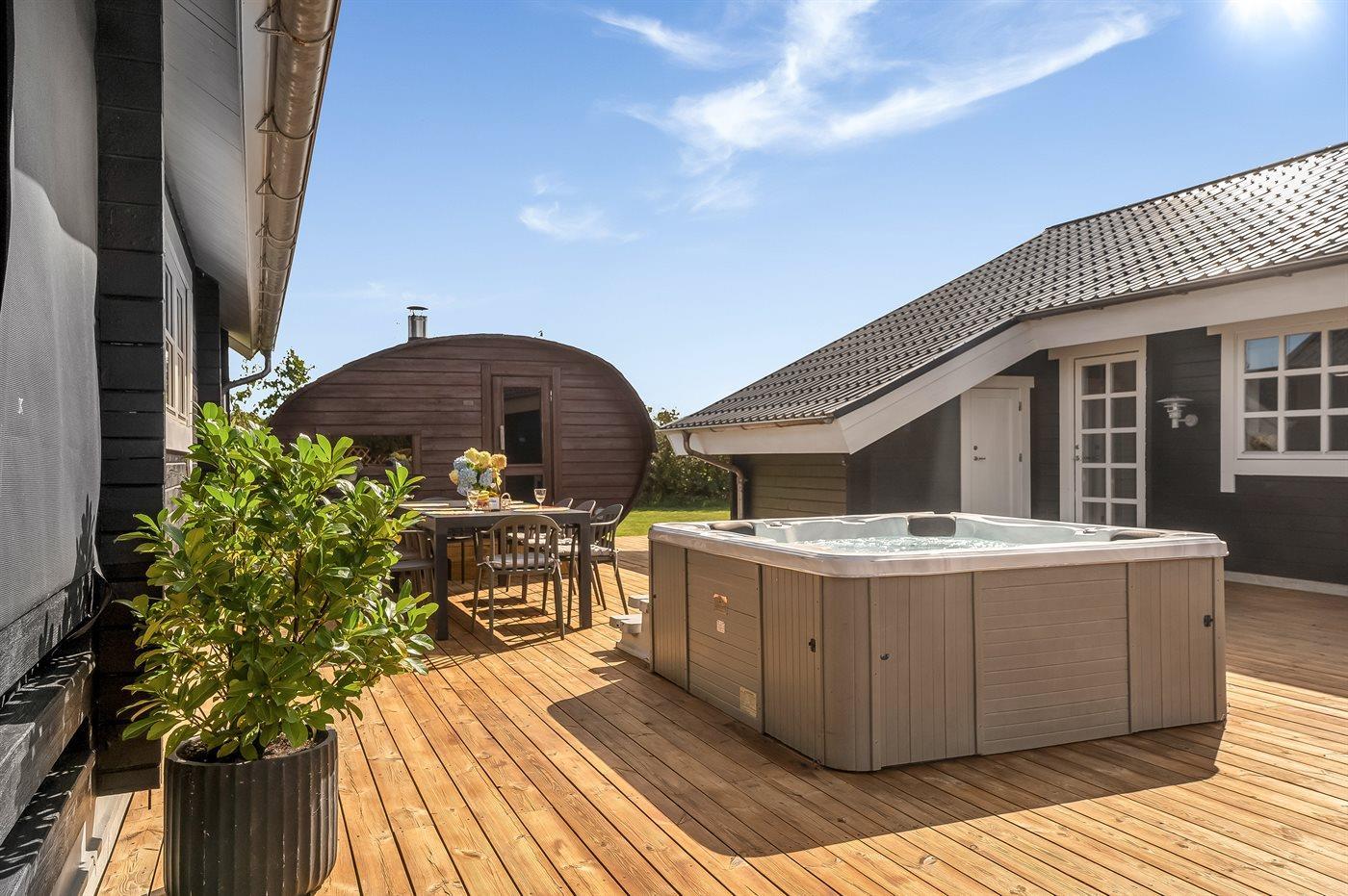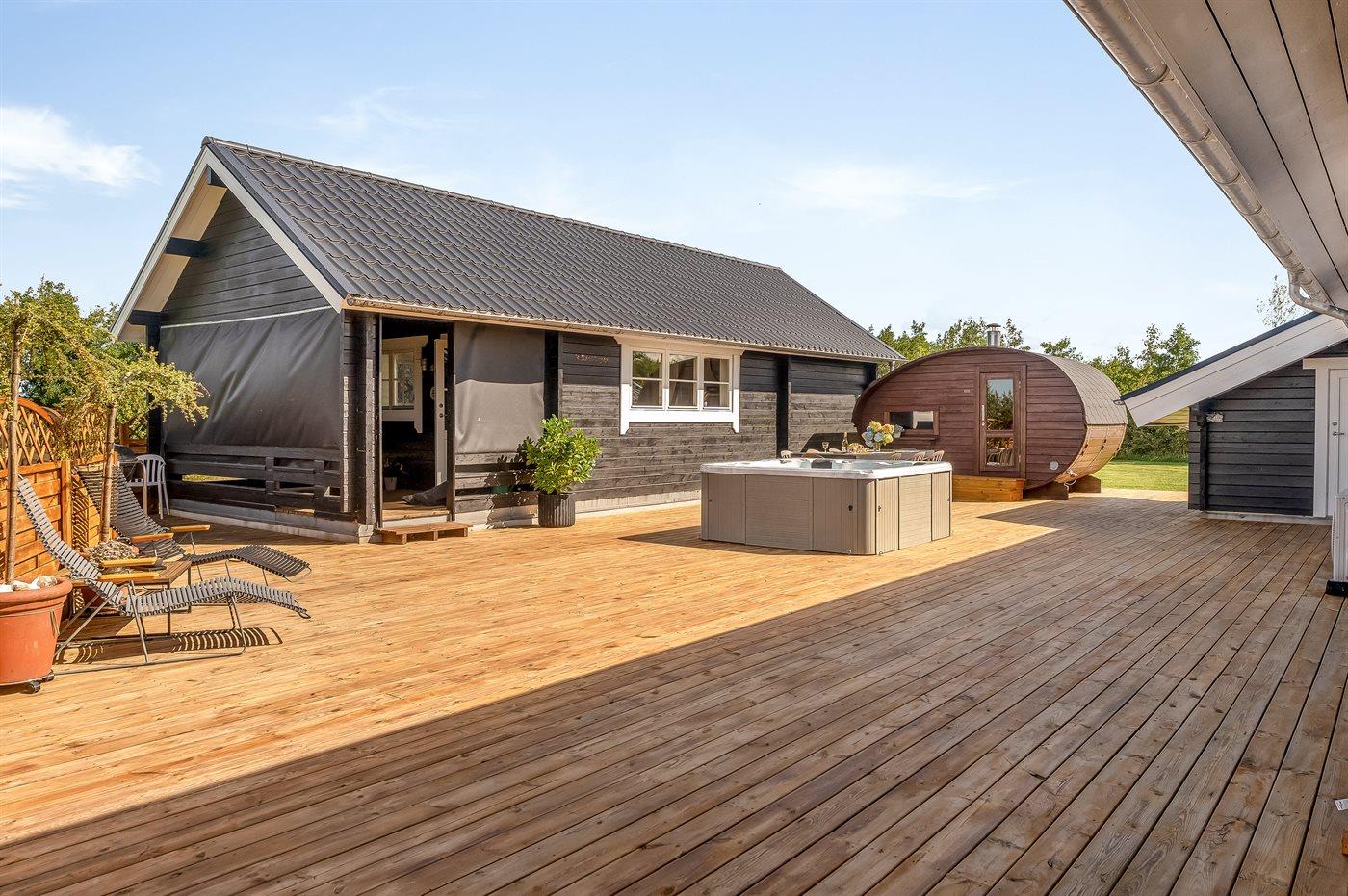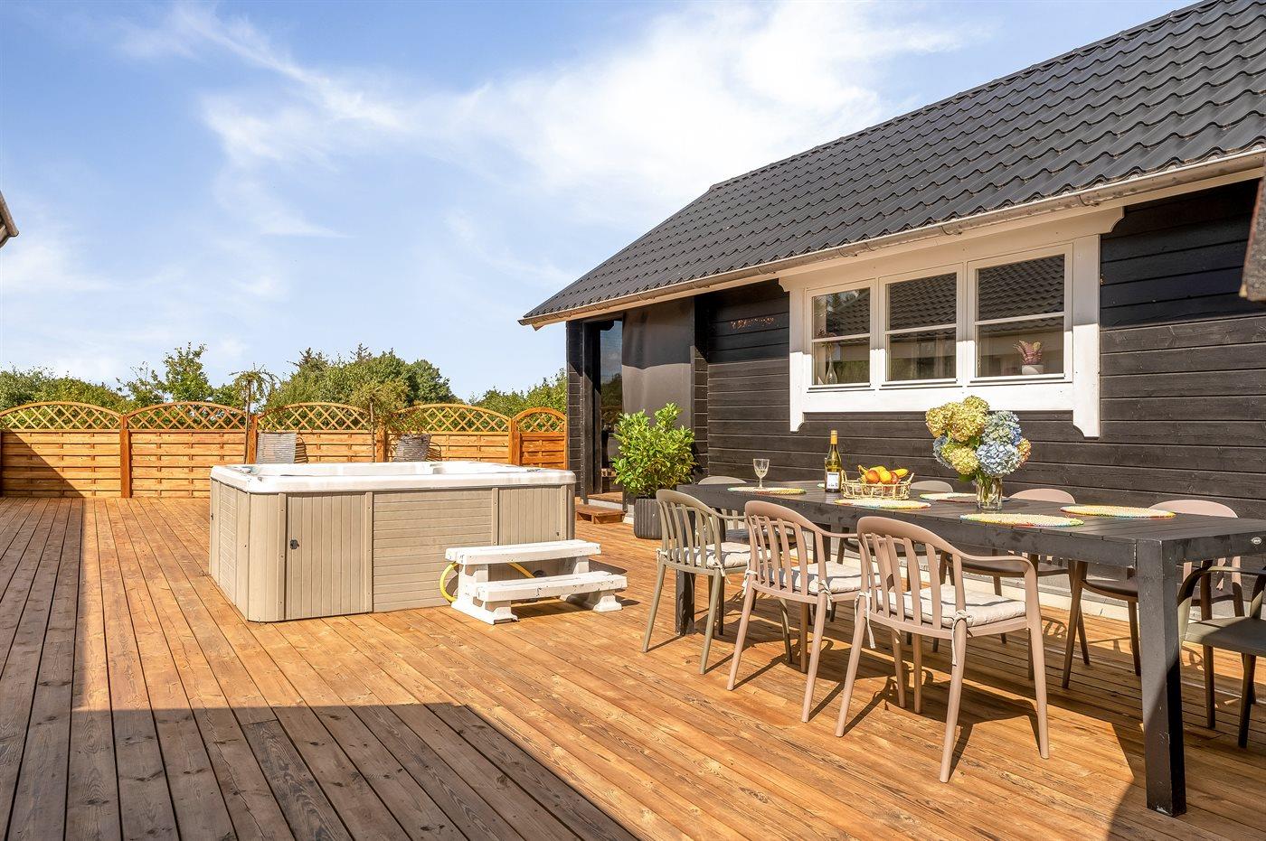 Til huset hører en dejlig udendørs spa – her er der mulighed for at sidde i det varme vand, nyde de dejlige sommeraftener og dertil hørende lyde og lade kroppen og sindet slappe af.