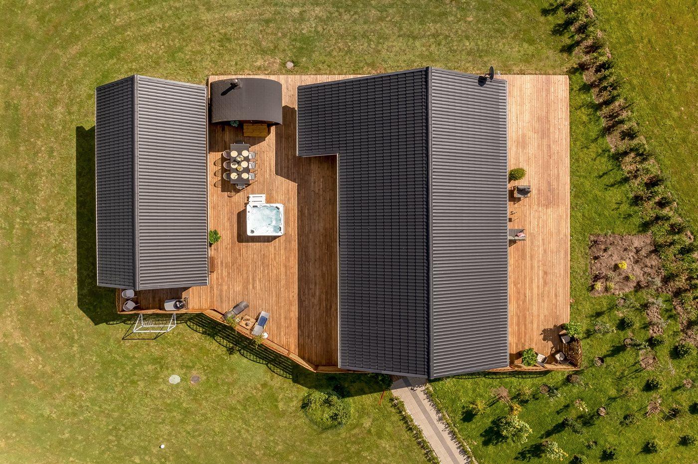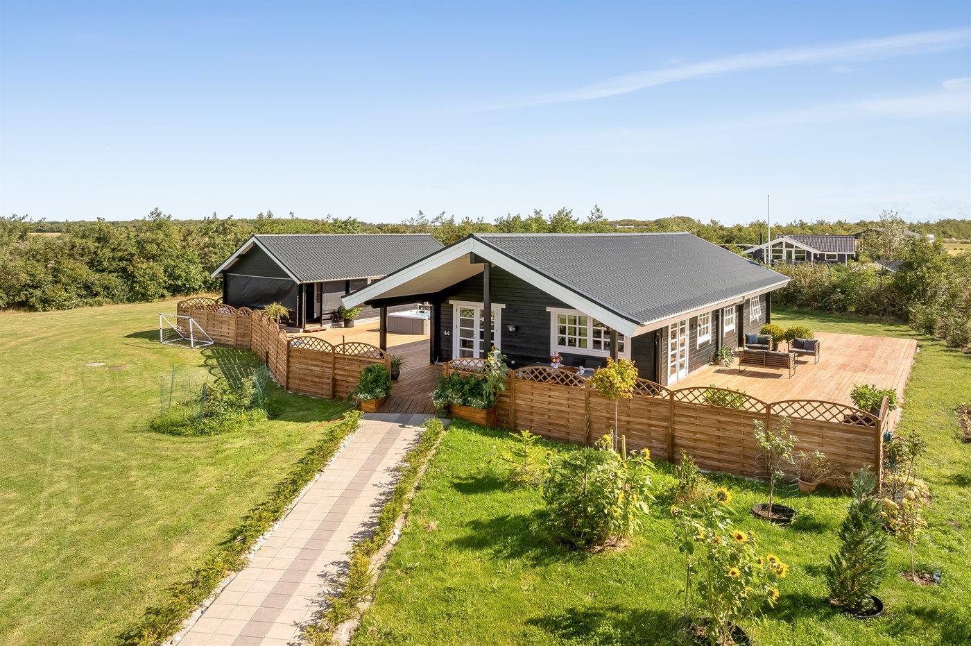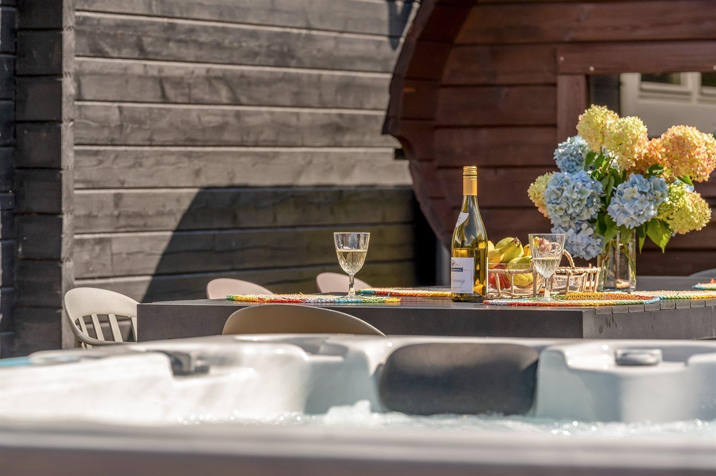Til huset hører en dejlig udendørs spa – her er der mulighed for at sidde i det varme vand, nyde de dejlige sommeraftener og dertil hørende lyde og lade kroppen og sindet slappe af.