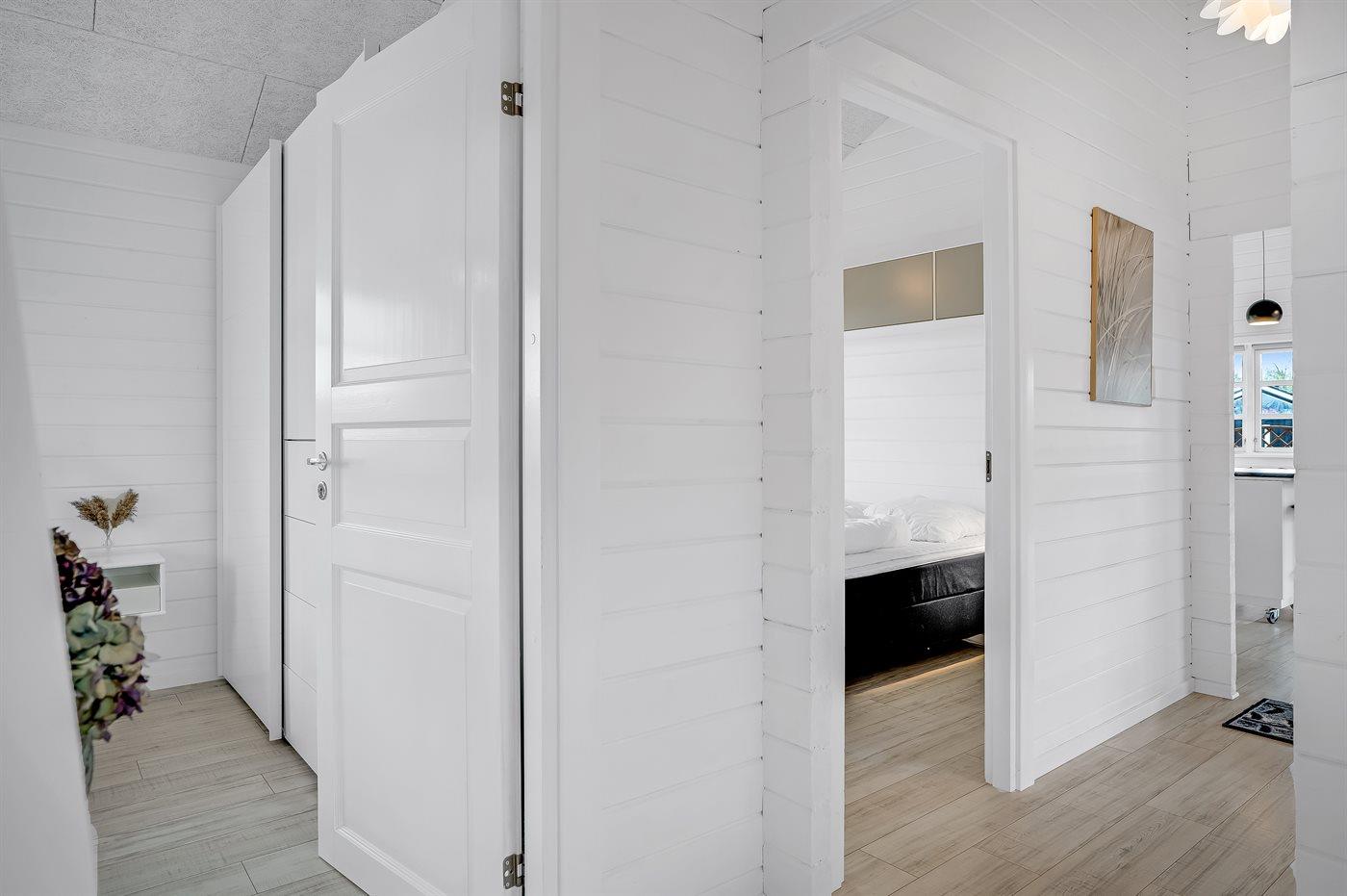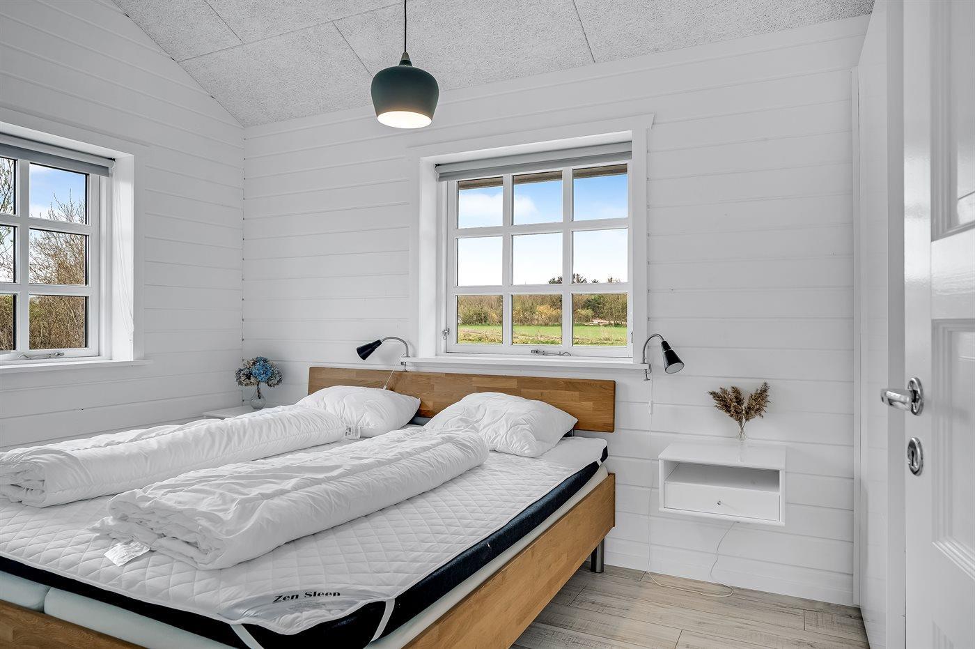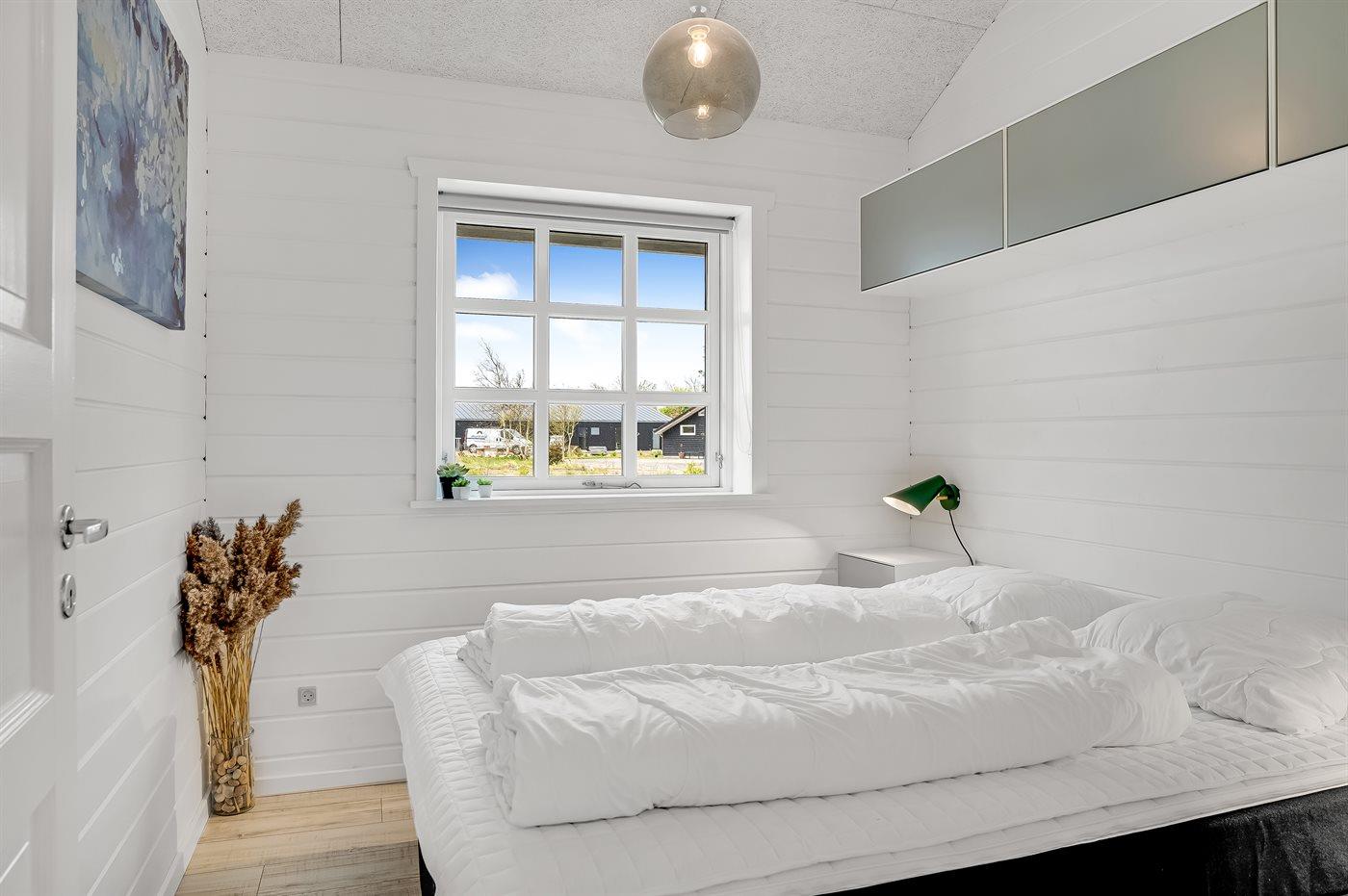 Der er i alt 4 soveværelser. Sovepladserne fordeler sig på: 6 sovepladser i dobbeltsenge. 2 sovepladser i enkeltsenge. 2 sovepladser på madrasser. 2 af disse sovepladser befinder sig på husets hems. Derudover er der 1 stk. barneseng.