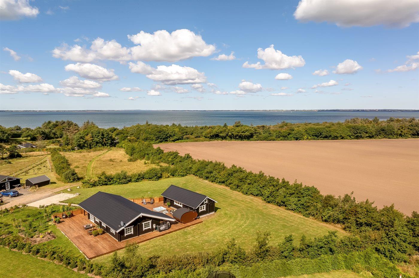 Ferieboligen er beliggende på en 2936 m² stor naturgrund. Der er 500 m til fjorden. Nærmeste forretning er beliggende i en afstand af 2000 m. Til ferieboligen hører åbent terrasseareal. Desuden er der overdækket terrasse. Fodboldmål. Udendørs sauna. Parkering ved ferieboligen.