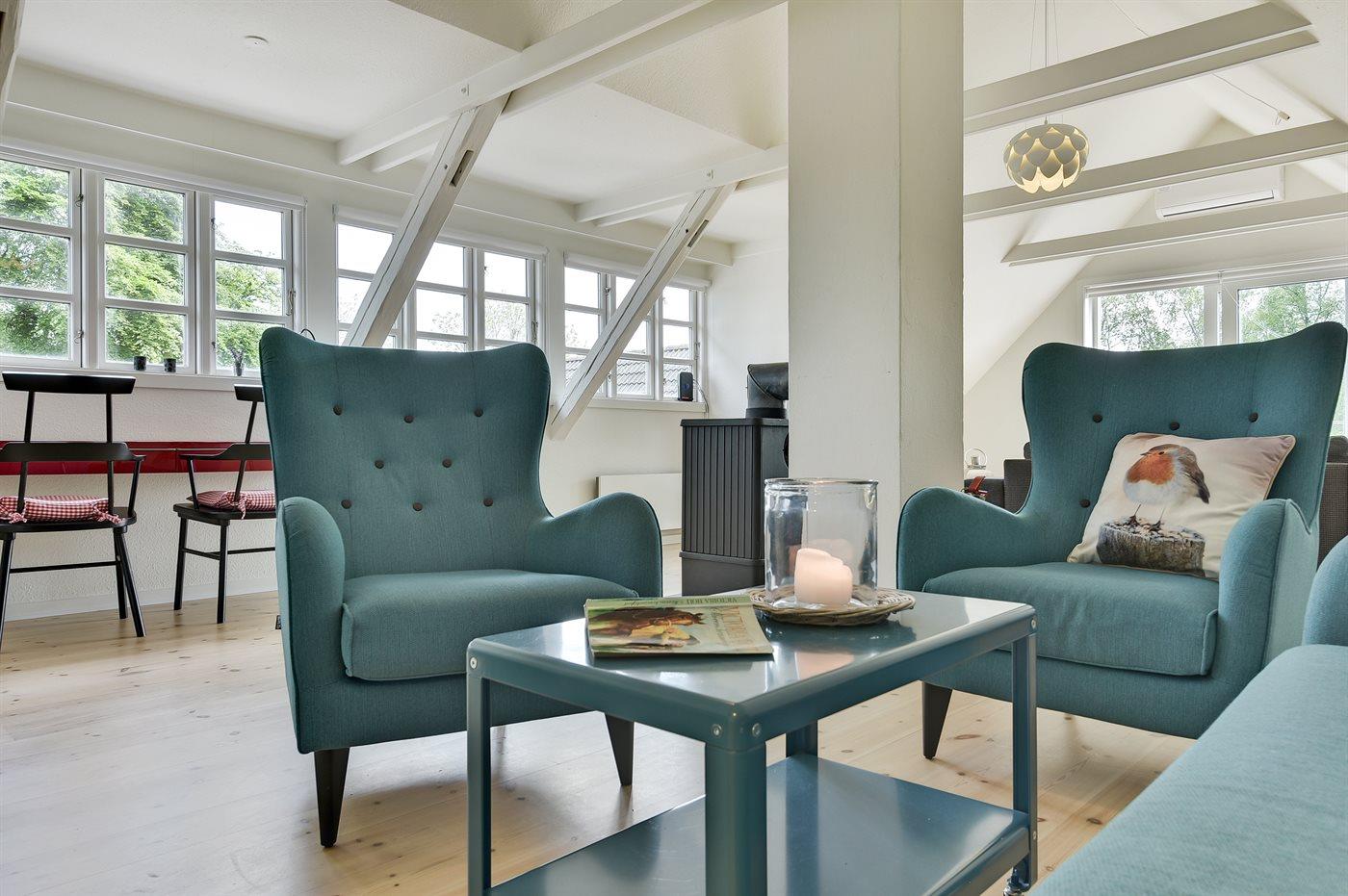 Der er i alt 8 soveværelser. Sovepladserne fordeler sig på: 12 sovepladser i dobbeltsenge. 2 sovepladser i enkeltsenge. Derudover er der 1 stk. barneseng.
