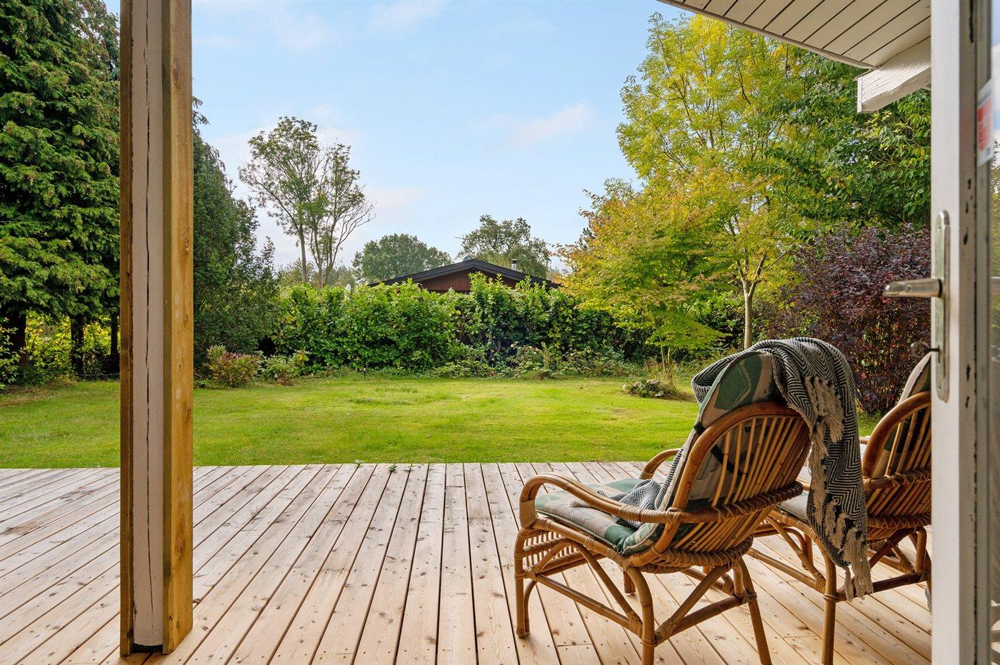 Ferieboligen er beliggende på en 1287 m² stor havegrund. Der er 400 m til havet. Der er en sø i en afstand af 20 m. Nærmeste forretning er beliggende i en afstand af 1500 m. Til ferieboligen hører 90 m² terrasseareal. Desuden er der 45 m² overdækket terrasse. Bålsted. Gasgrill står til rådighed. Parkering ved ferieboligen.