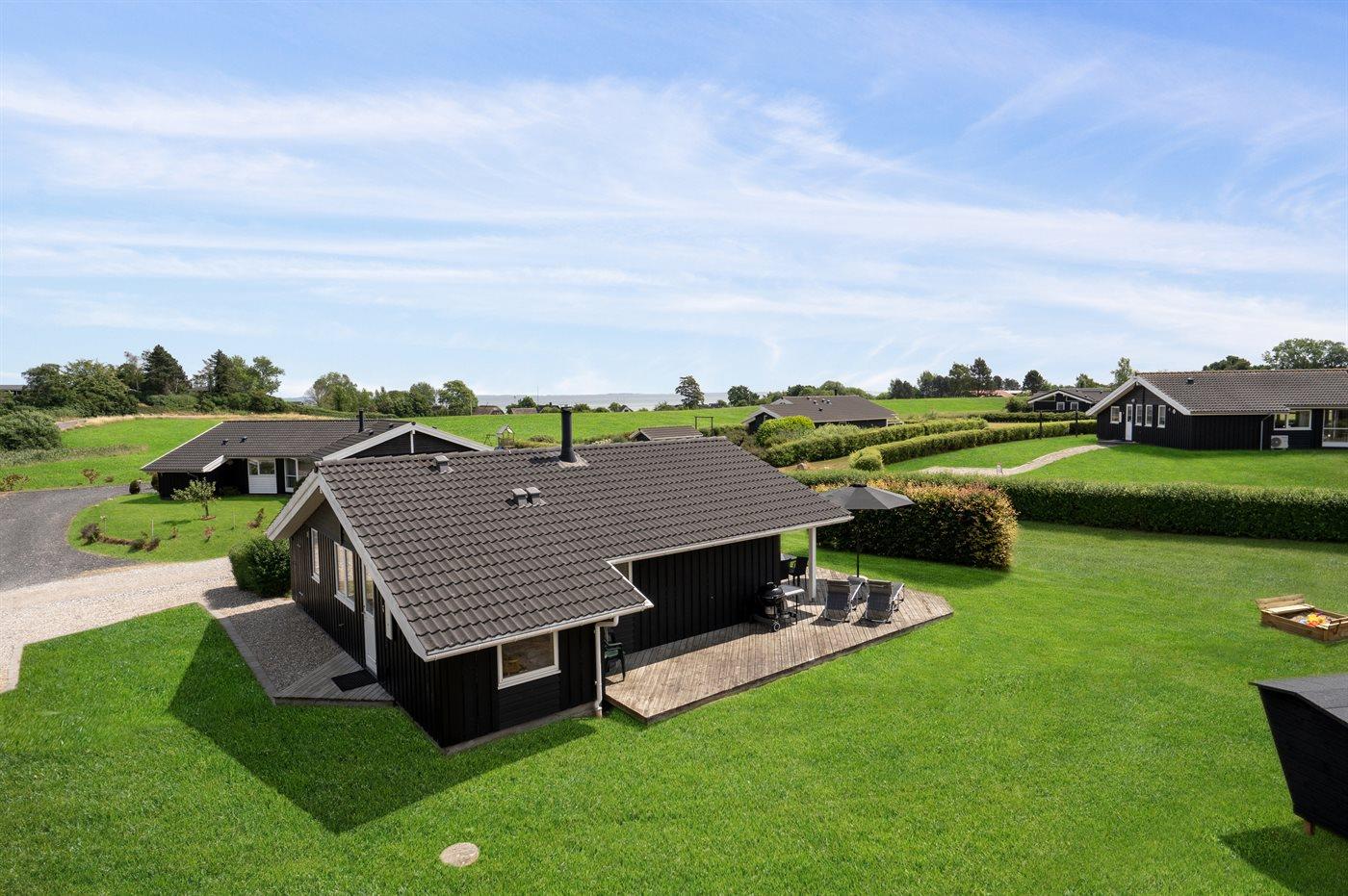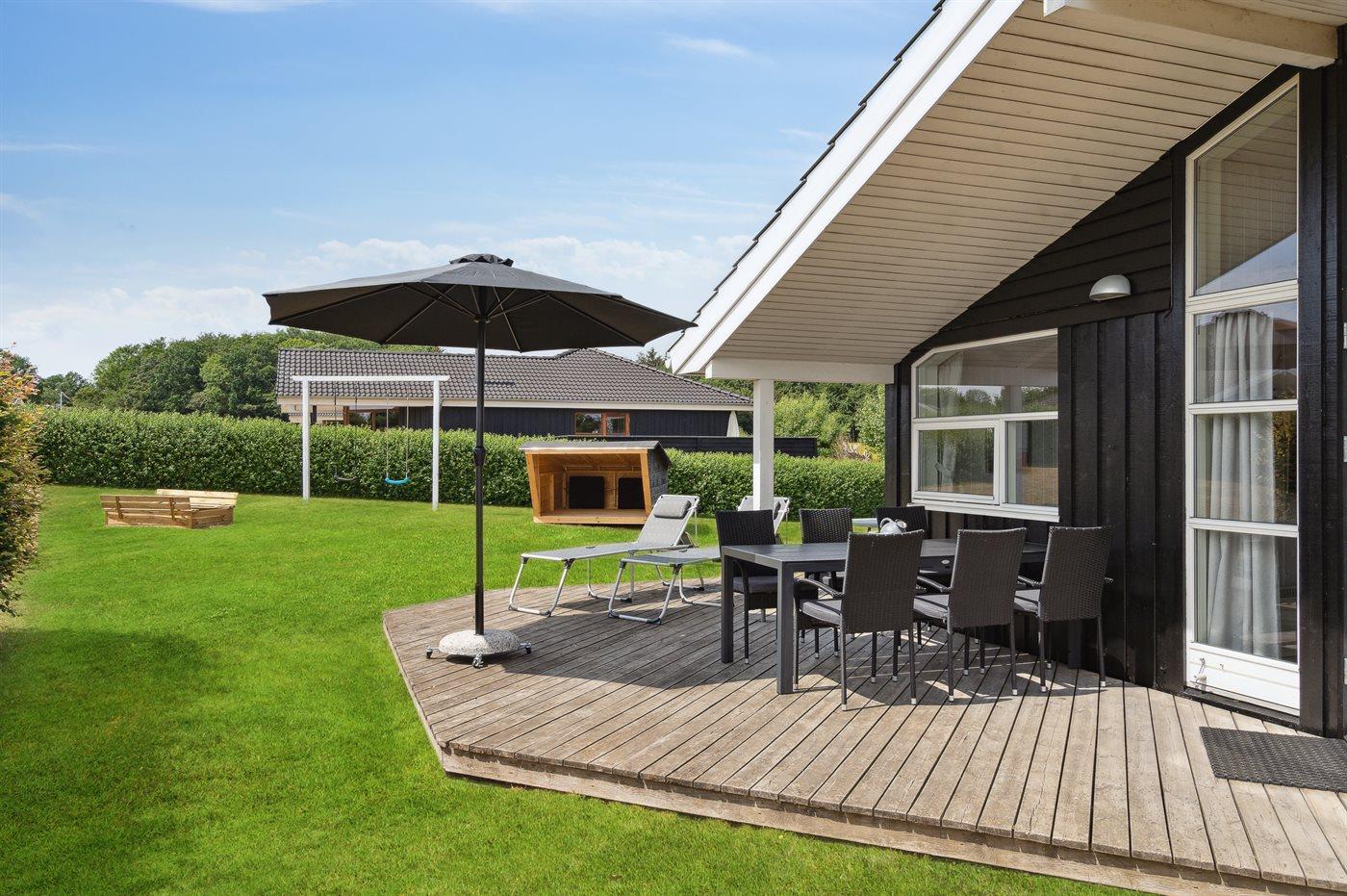 Ferieboligen er beliggende på en 1011 m² stor havegrund. Der er 350 m til havet. Nærmeste forretning er beliggende i en afstand af 650 m. Til ferieboligen hører åbent terrasseareal. Desuden er der overdækket terrasse. Der er redskabsrum. Gynge. Sandkasse. Bålsted. Shelter. Grill til rådighed. Parkering ved ferieboligen.
