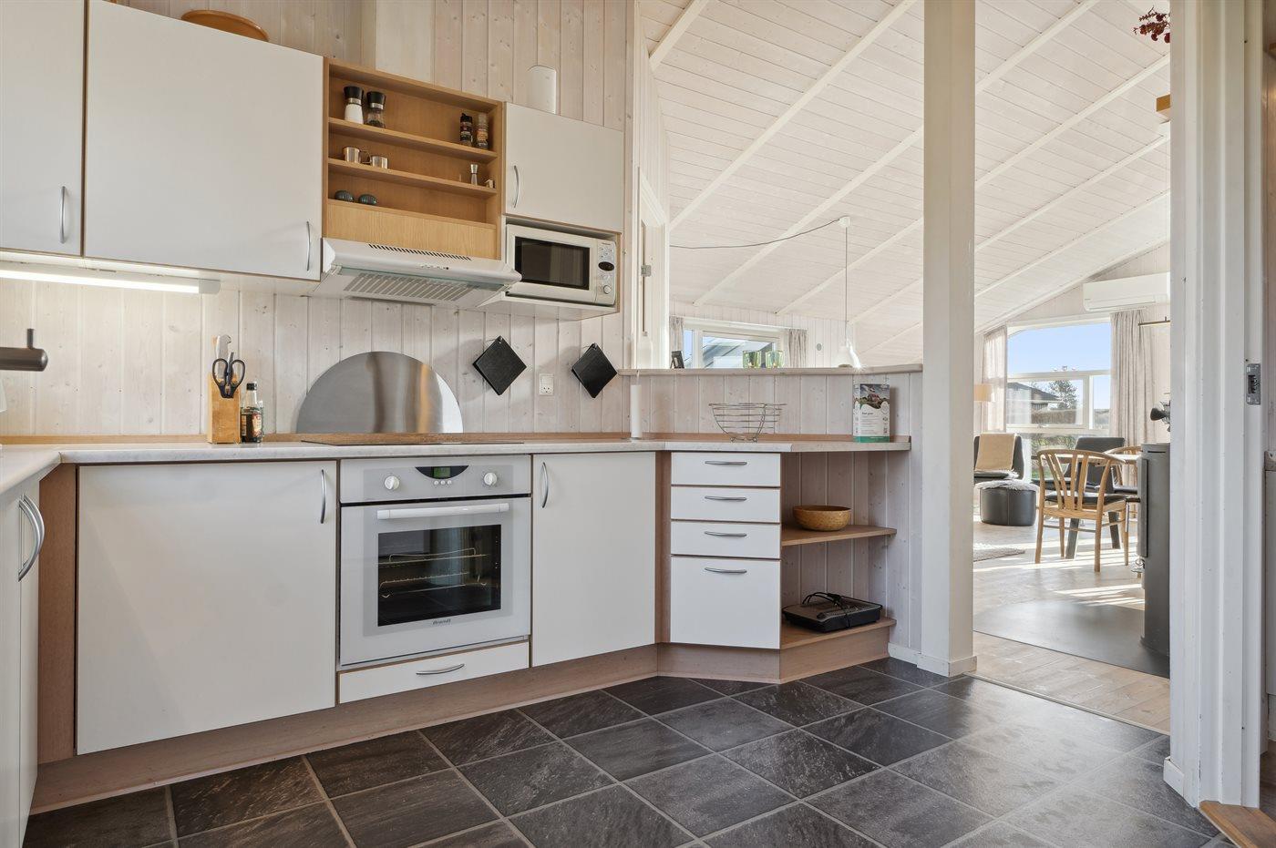 Køkkenet er udstyret med 1 køleskab. Der er 4 induktionskogeplader, varmluftovn, mikrobølgeovn samt opvaskemaskine.