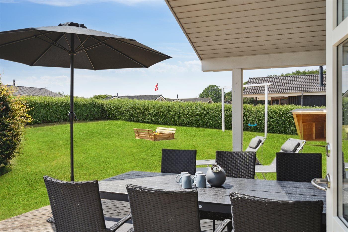 Et dejligt familievenligt og velindrettet, lyst sommerhus med skøn, sydvendt terrasseområde. Der findes en stor have med gyngestativ, sandkasse og shelter, der indbyder til masser af udeliv, spil og afslapning.