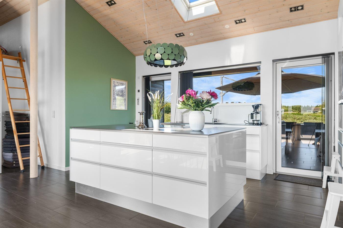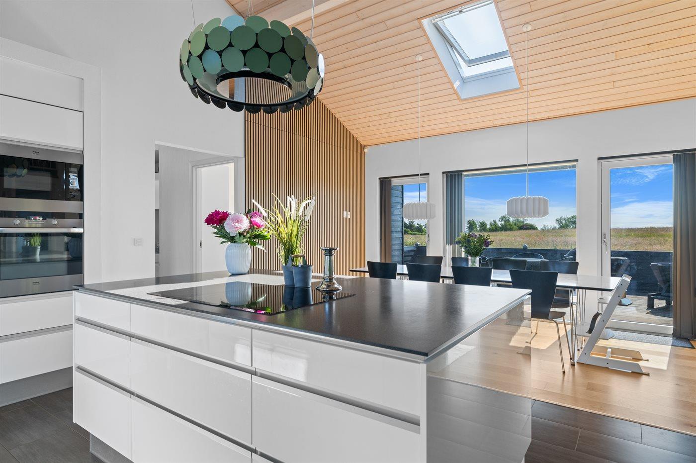 Køkkenet er udstyret med 1 køleskab. Der er 5 induktionskogeplader, varmluftovn, mikrobølgeovn samt opvaskemaskine.