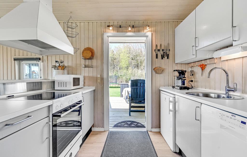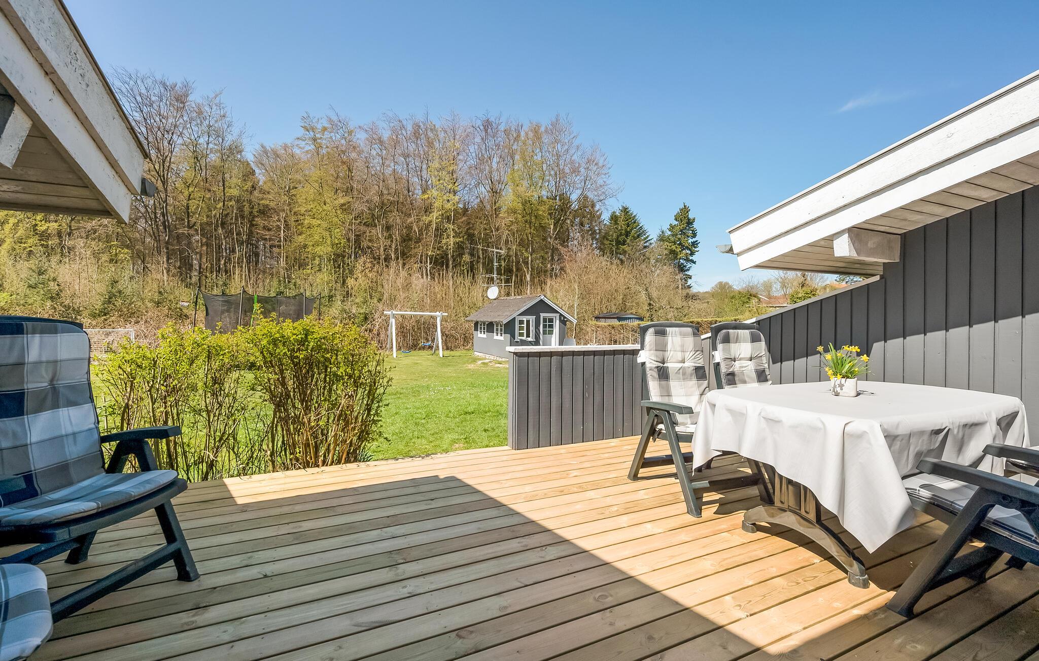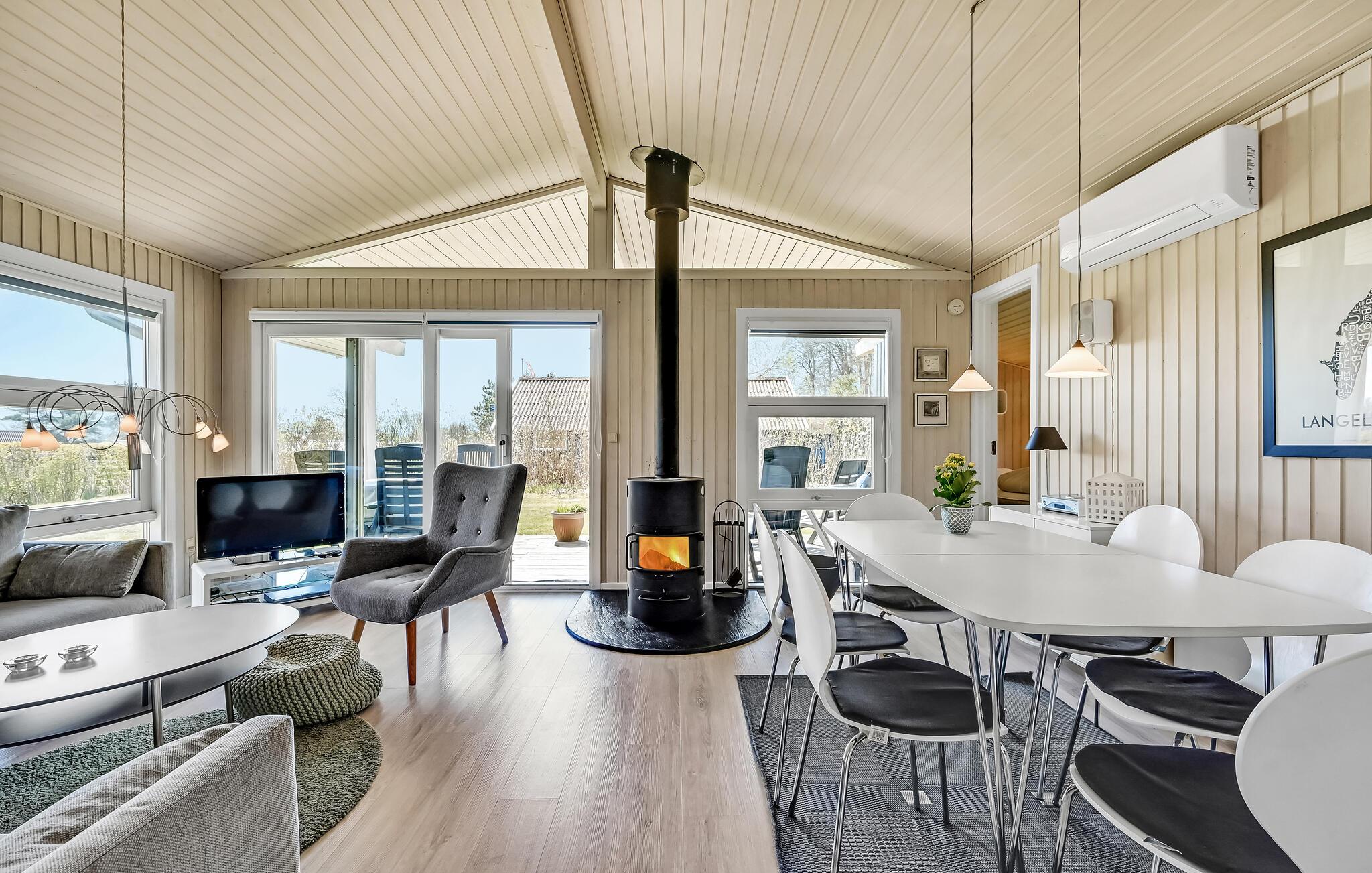 I feriehusområdet Spodsbjerg ligger dette dejlige træferiehus for enden af en lukket vej, så her er meget lidt trafik. Det er smagfuldt møbleret og komfortabelt udstyret med mange moderne bekvemmeligheder til en afslappet ferie. Blandt andet er der en sauna til 6 personer, hvor det er dejligt at slappe af i varmen. Fra huset er der kun 300 m til badestranden og det friske hav og i Spodsbjerg er der desuden meget gode fiskemuligheder. Spodsbjerg lystfiskersø ligger i øvrigt i umiddelbar nærhed, så husk fiskestangen og fiskekogebogen.