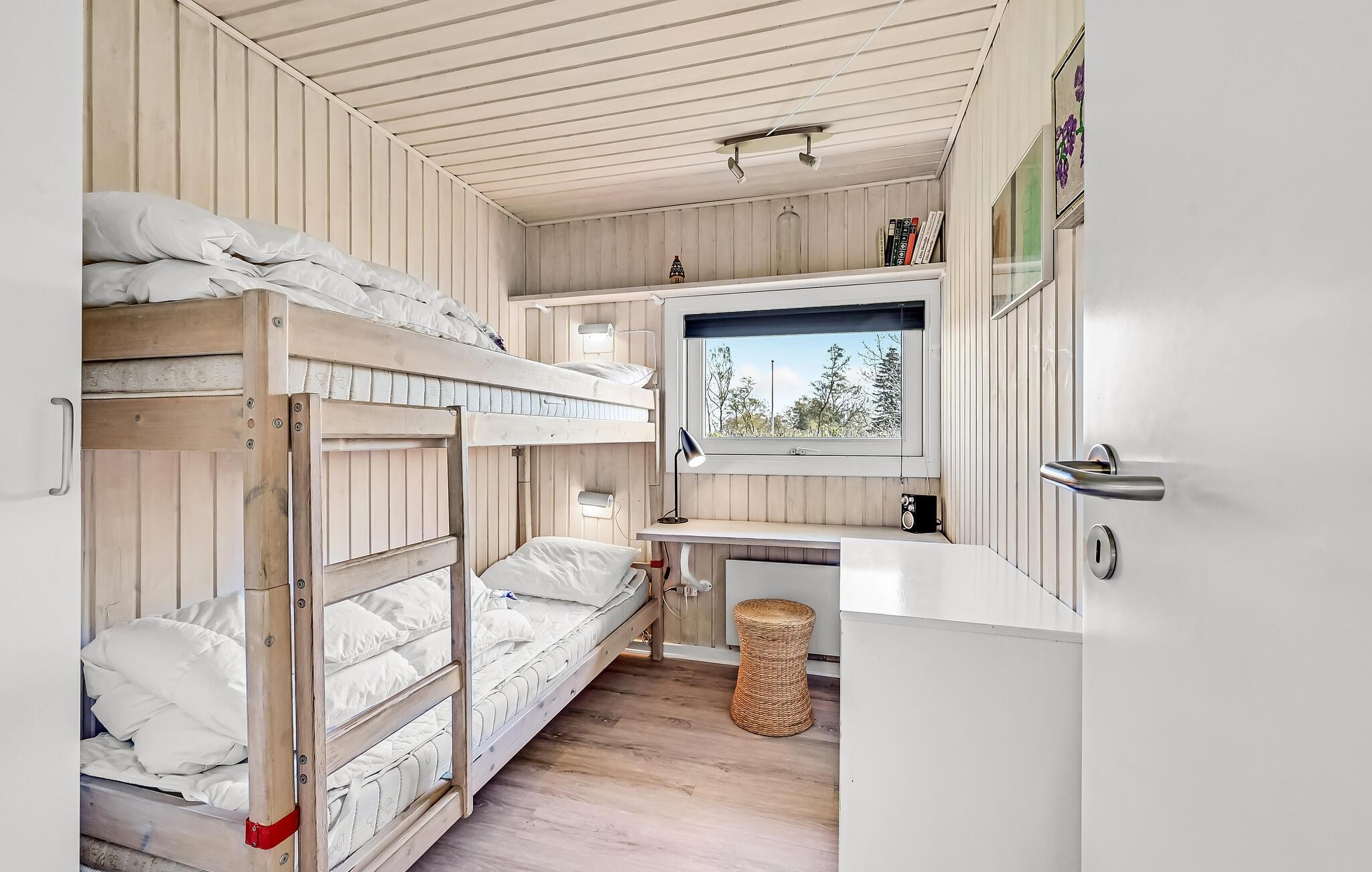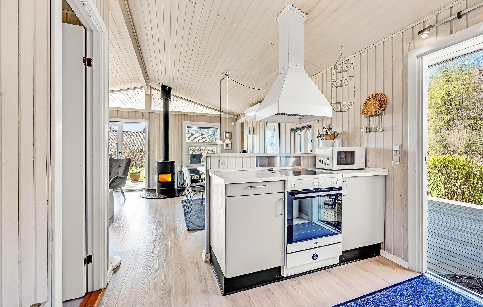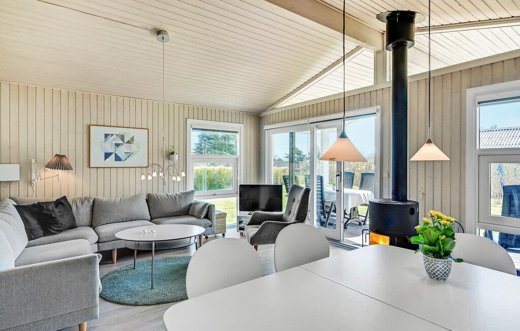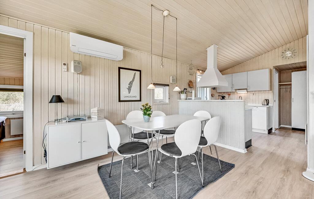 I feriehusområdet Spodsbjerg ligger dette dejlige træferiehus for enden af en lukket vej, så her er meget lidt trafik. Det er smagfuldt møbleret og komfortabelt udstyret med mange moderne bekvemmeligheder til en afslappet ferie. Blandt andet er der en sauna til 6 personer, hvor det er dejligt at slappe af i varmen. Fra huset er der kun 300 m til badestranden og det friske hav og i Spodsbjerg er der desuden meget gode fiskemuligheder. Spodsbjerg lystfiskersø ligger i øvrigt i umiddelbar nærhed, så husk fiskestangen og fiskekogebogen.