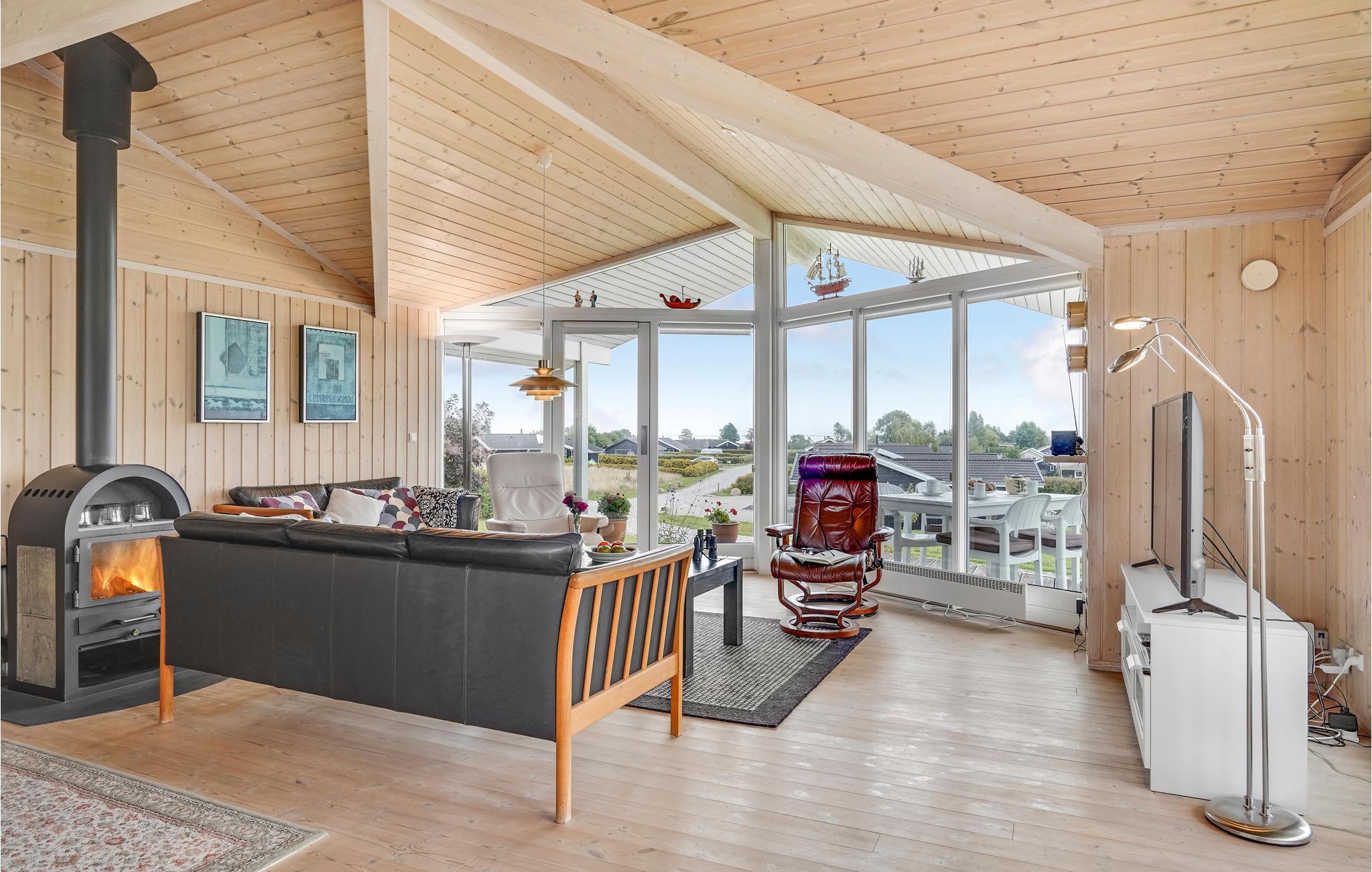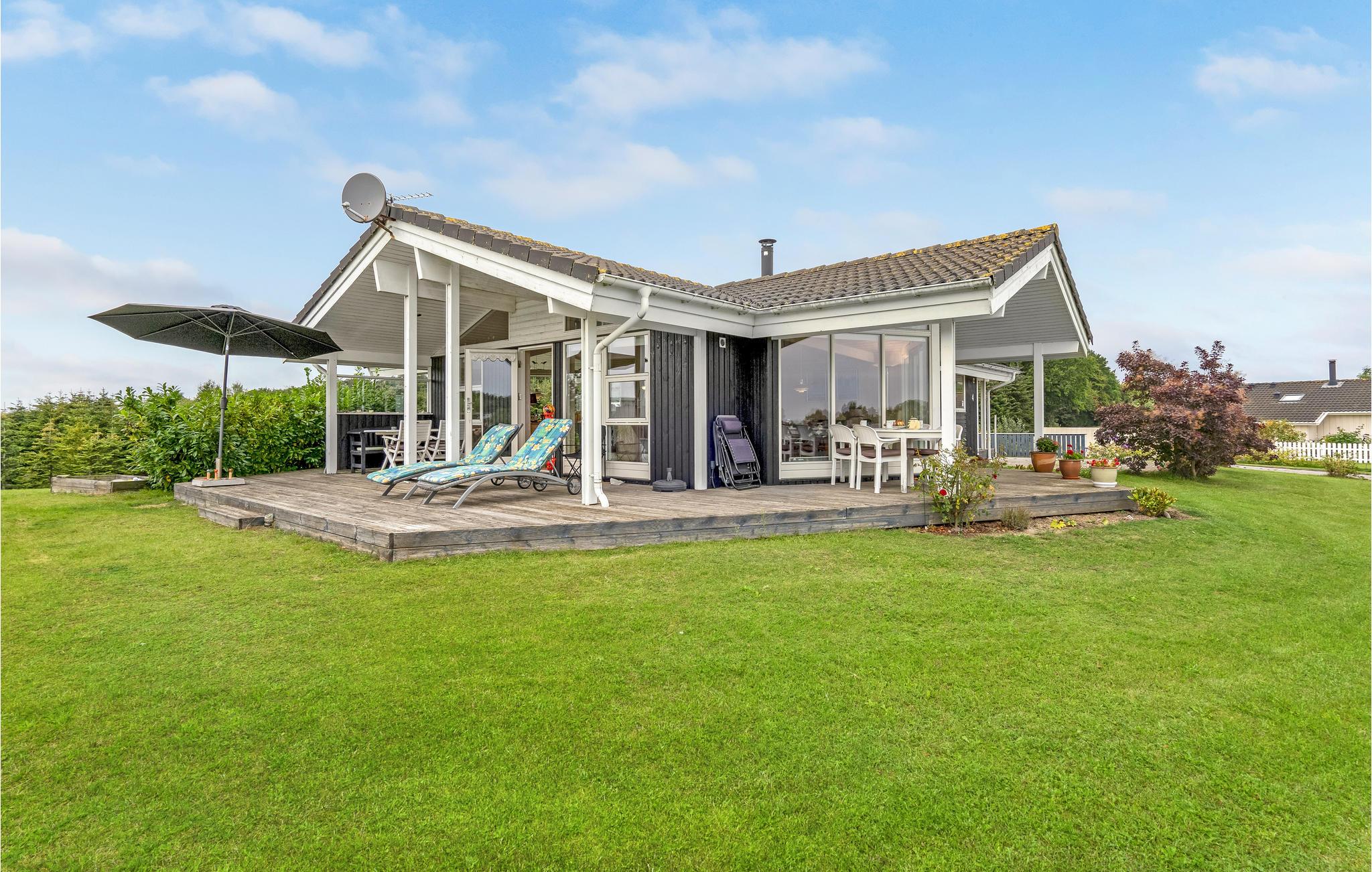 Hyggeligt træhus med panoramaudsigt over Langelandsbæltet og kun 600 meter fra vandet i Spodsbjerg.