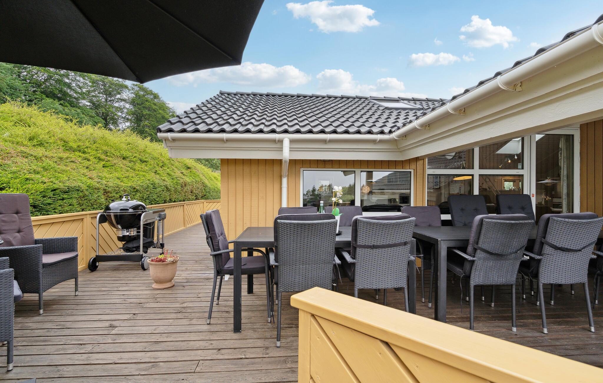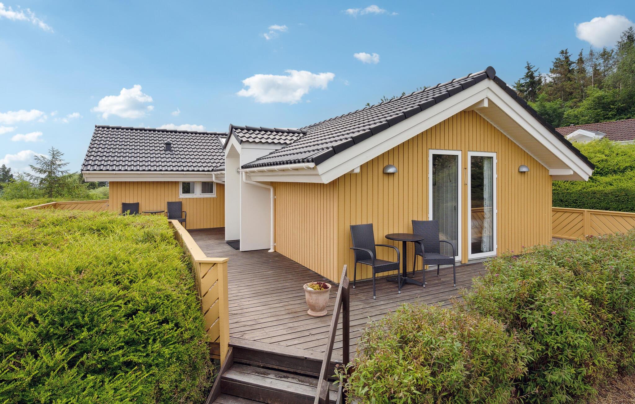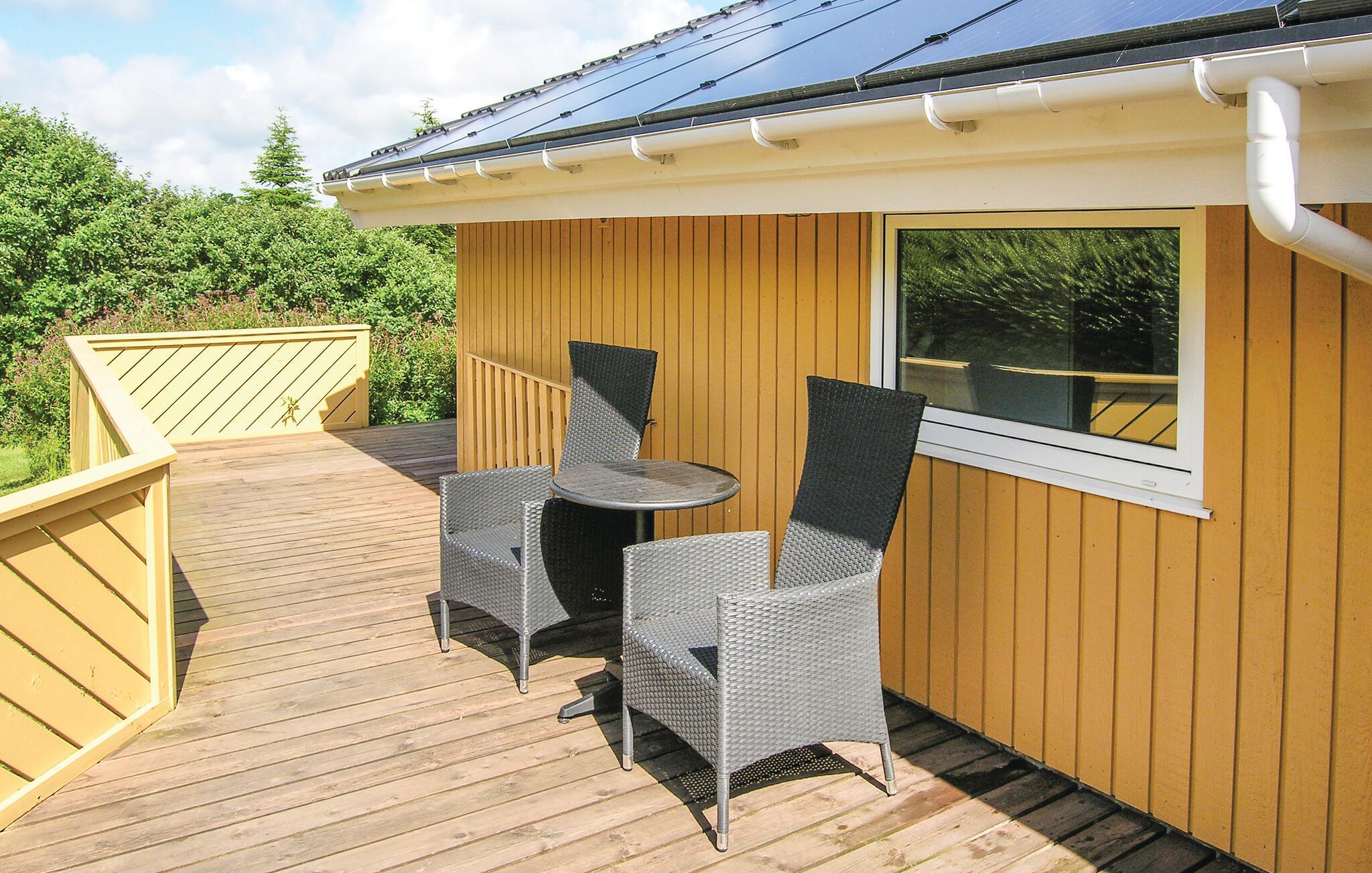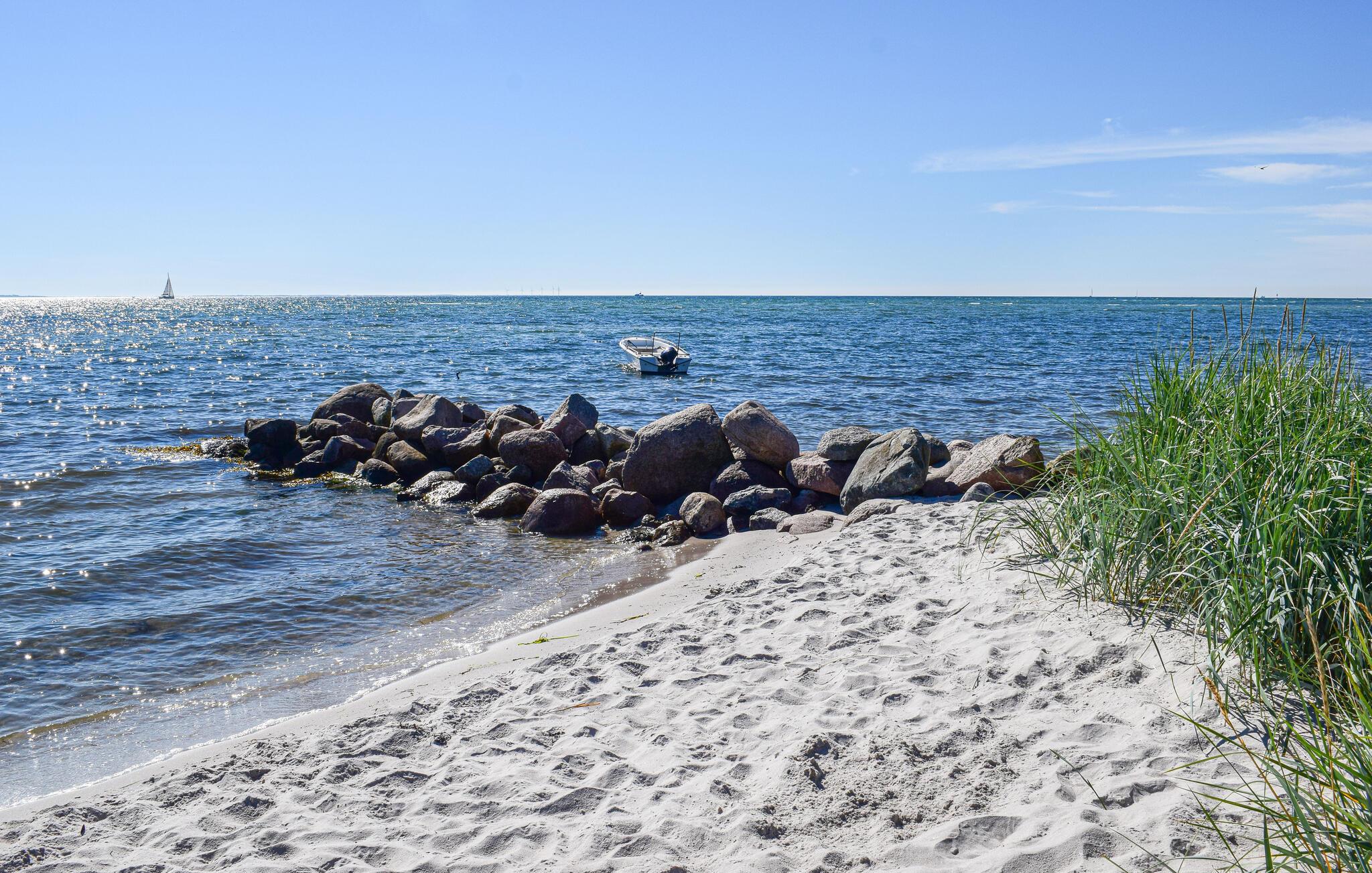 Udenfor venter en stor, delvist overdækket terrasse og en velplejet have, som er perfekte til afslappende timer i den friske luft. Den børnevenlige badestrand og den nærliggende lystbådehavn indbyder til vandsjov og hyggelige gåture. Lystfiskere vil elske området, uanset om det er ved havnen eller i den nærliggende Put & Take-sø. Besøg den charmerende by Rudkøbing med sine hyggelige handelsgader, eller udforsk naturområderne Nørreballe Nor og Tryggelev Nor i den sydlige del af øen.