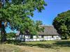 Charmerende stråtækt feriebolig fra 1700-tallet ved stranden i Spodsbjerg med stor have og havudsigt.