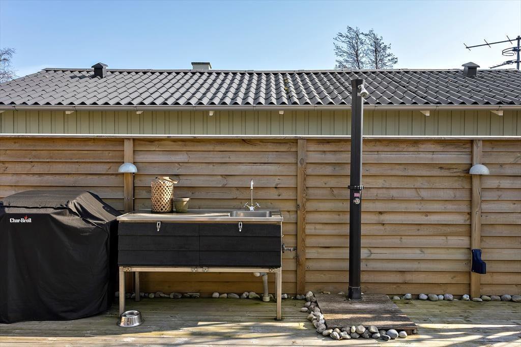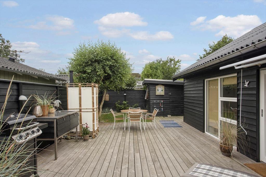 Sommerhuset har en skøn lukket grund, som er et ideelt sted til udendørs aktiviteter. Her kan børnene lege, mens de voksne slapper af i solen, eller nyder et måltid under åben himmel på terrassen. Den delvist overdækkede terrasse giver mulighed for både at spise morgenmad i solen eller tilbringe lange sommeraftener med grillmad og hyggeligt samvær. Beliggenheden tæt på stranden betyder, at du nemt kan tage en dukkert i det klare vand eller tage på en lang gåtur langs kysten. Den børnevenlige strand gør det til en perfekt destination for familier, hvor både små og store kan nyde naturen og hinandens selskab.