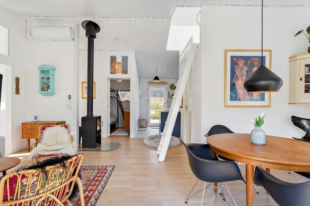 Når du træder indenfor i dette indbydende sommerhus, bliver du mødt af en hyggelig og rummelig stue, der skaber en varm og afslappet atmosfære. Stuen er indrettet med komfortable møbler og en brændeovn, som gør det ideelt at tilbringe kolde aftener med en god bog eller et spil med familien. Det åbne køkken/alrum gør det nemt at samles til måltider og samvær, og her er masser af plads til både madlavning og hygge. Fra stuen er der udgang til en dejlig terrasse, hvor du kan nyde solens varme stråler og den friske havluft. På hemsen hvor der findes madrasser, kan nyde den fantastiske udsigt til vandet og omgivelserne. De tre soveværelser er komfortabelt indrettet og giver dig mulighed for at få en god nattesøvn, så du kan vågne op frisk til endnu en dag med ferieeventyr.