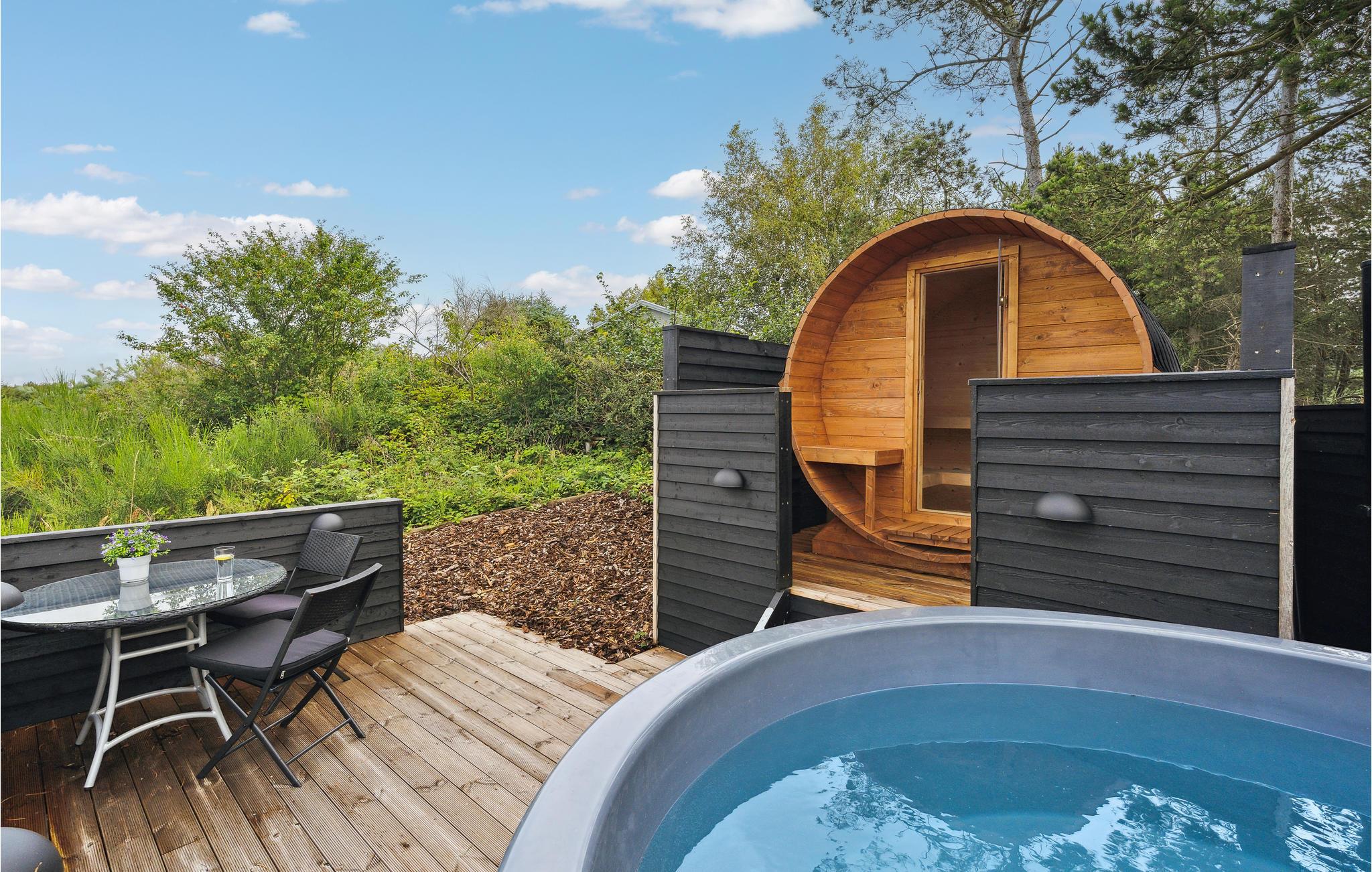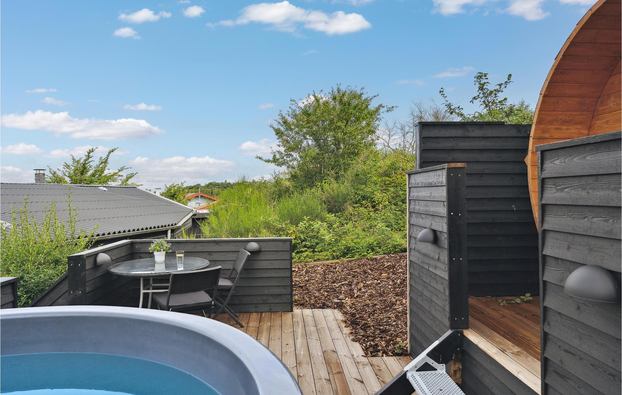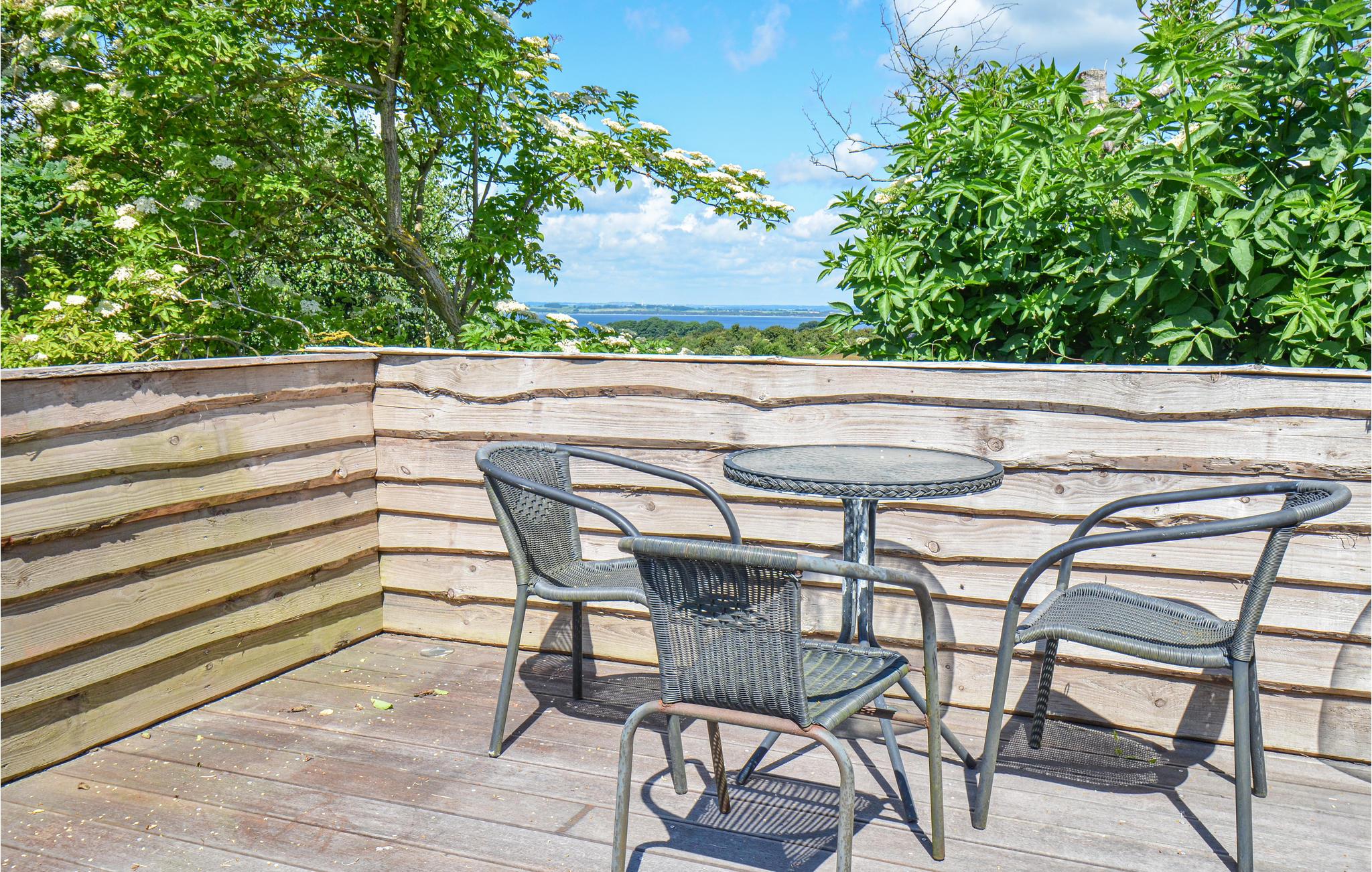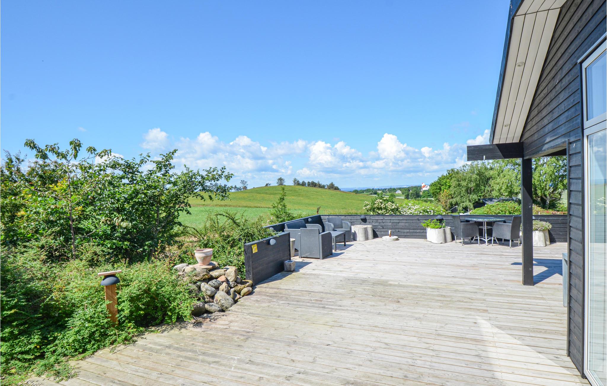 Udendørs på den store træterrasse, der er afskærmet og går næsten hele vejen rundt om huset, kan I nyde ferien i fulde drag i de dejlige havemøbler og liggestole. Tilbered skønne feriemåltider på grillen eller i udekøkkenet, mens børnene leger og spiller bold på græsplænen. Medbring endelig fiskestængerne, for her er rigtig gode muligheder for fangst fra kysten ved Sletterhage Fyr. I har ikke langt indkøb og charmerende Ebeltoft ligger en halv times kørsel væk fra huset med sine hyggelige, smalle brostensbelagte gader og stræder samt gode seværdigheder.