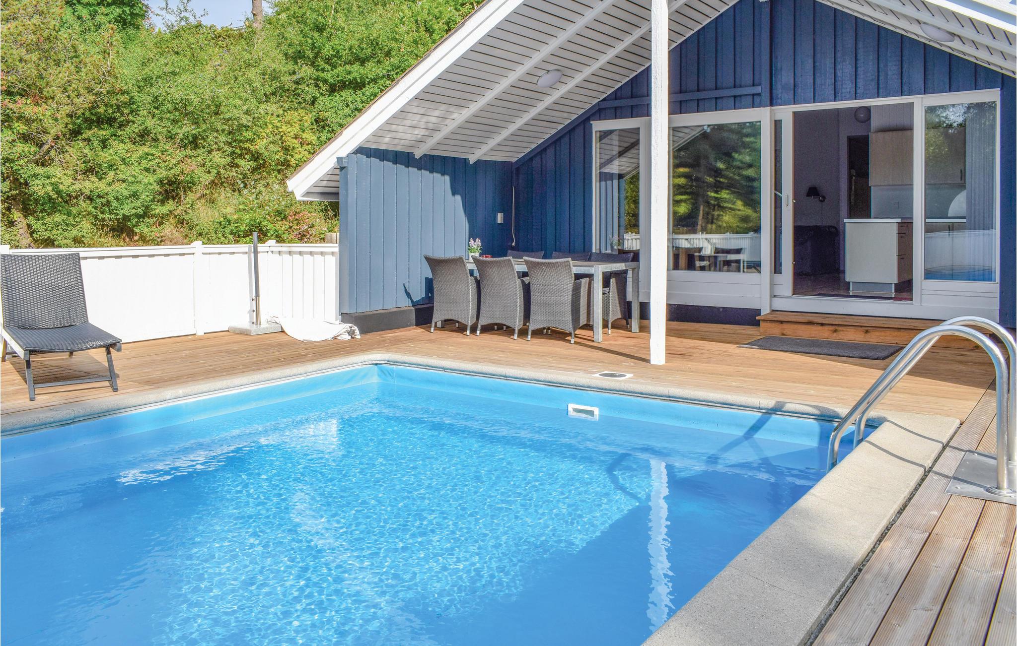 Skønt feriehus på Helgenæs med udendørs pool, spabad og sauna i naturskønne omgivelser.