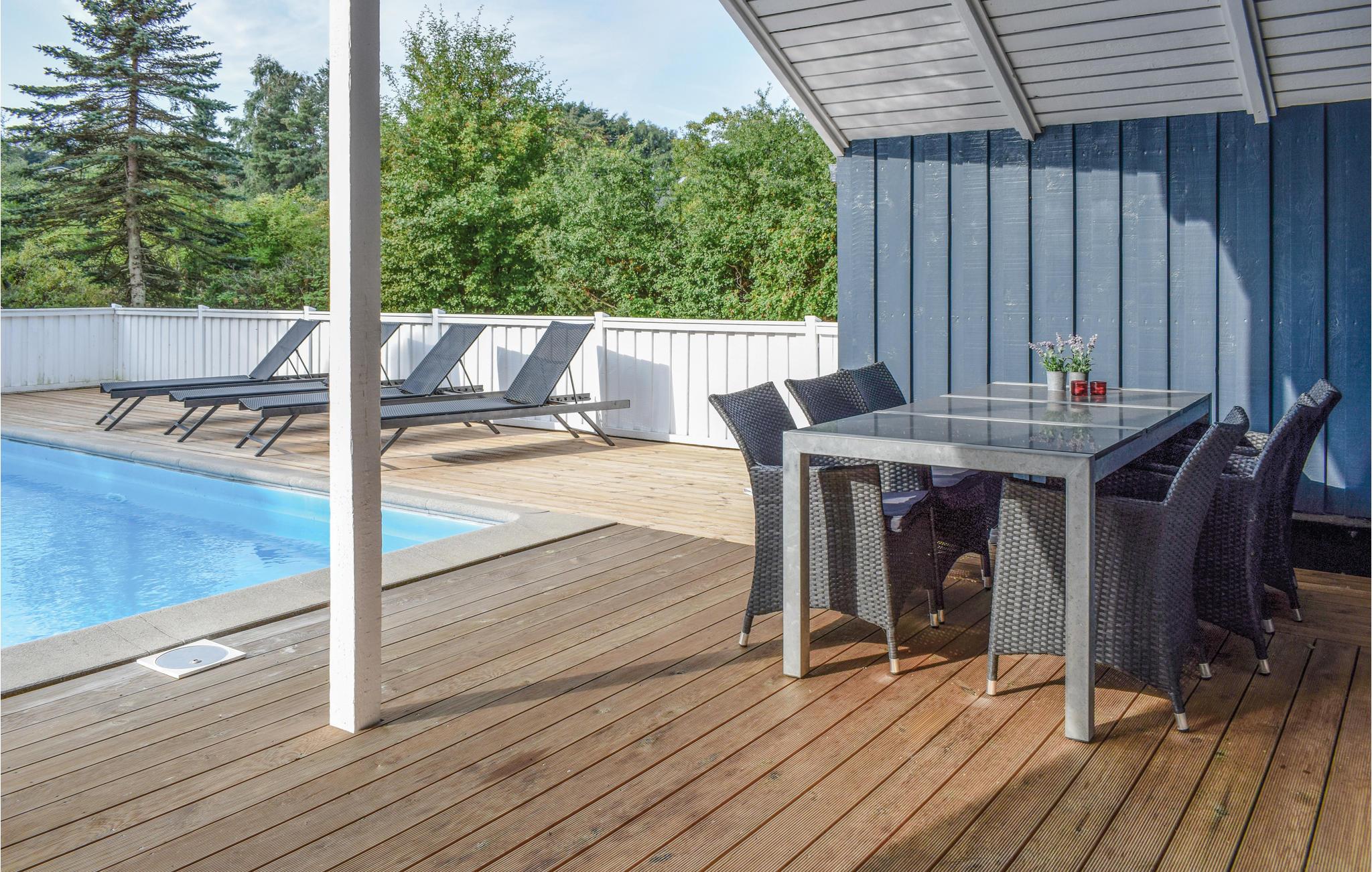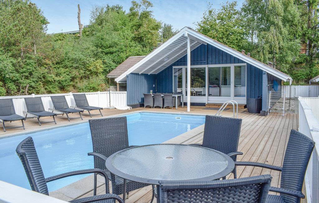 I vidunderlige omgivelser på halvøen Helgenæs, ligger dette skønne feriehus på en stor naturgrund. Huset råder over mange faciliteter, både til sommer- og vinterbrug, ikke mindst er der en 32 m2 udendørs swimmingpoo samt et udendørs bordtennisbord. Huset byder også på både spabad og sauna, hvor I kan få løsnet musklerne efter en aktiv dag i naturen. Aftenerne kan I tilbringe foran den knitrende ild i brændeovnen. Helgenæs er kendt for sine mange gode fiskepladser og der er ligeledes mulighed for at leje en båd kun 2 km fra huset. Alt i alt et herligt feriested for hele familien. Besøg også den dejlige by Ebeltoft med de smalle brostensbelagte gader. Af andre attraktioner i nærheden kan nævnes Djurs Sommerland og Kattegatscentret i Grenå.