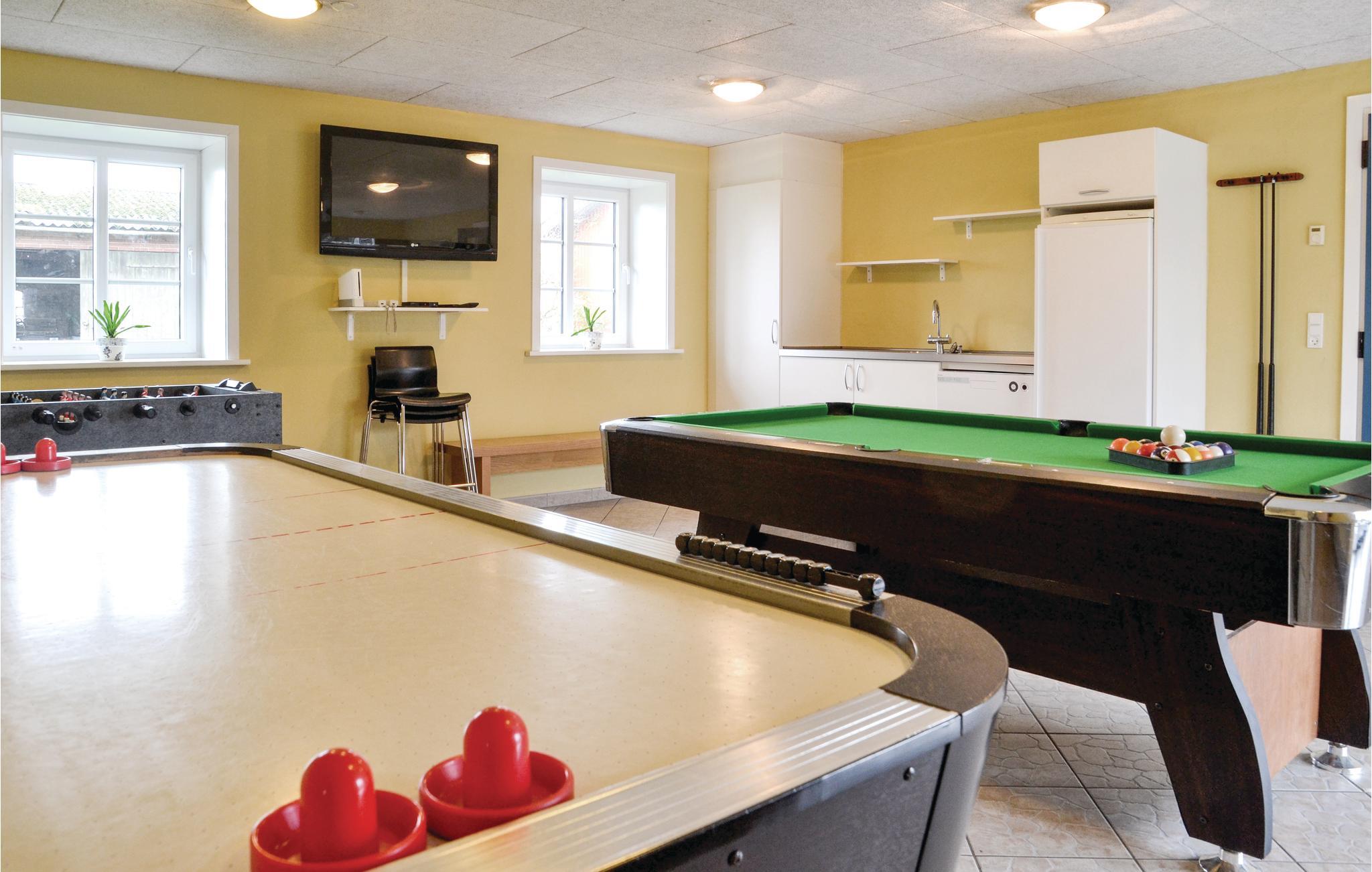 På landet og alligevel tæt på byerne Esbjerg og Ribe, ligger dette store aktivitetshus, hvor I kan boltre jer i den store hal belagt med kunstgræs og har udstyr til bl.a. badminton, volleyball og basketball. Eller hop en tur i spabadet eller saunaen, som begge er placerede udendørs, hvilket kun gør oplevelsen endnu større. Huset er dejligt indrettet og udsmykket med kunst lavet af en lokal kunstner.