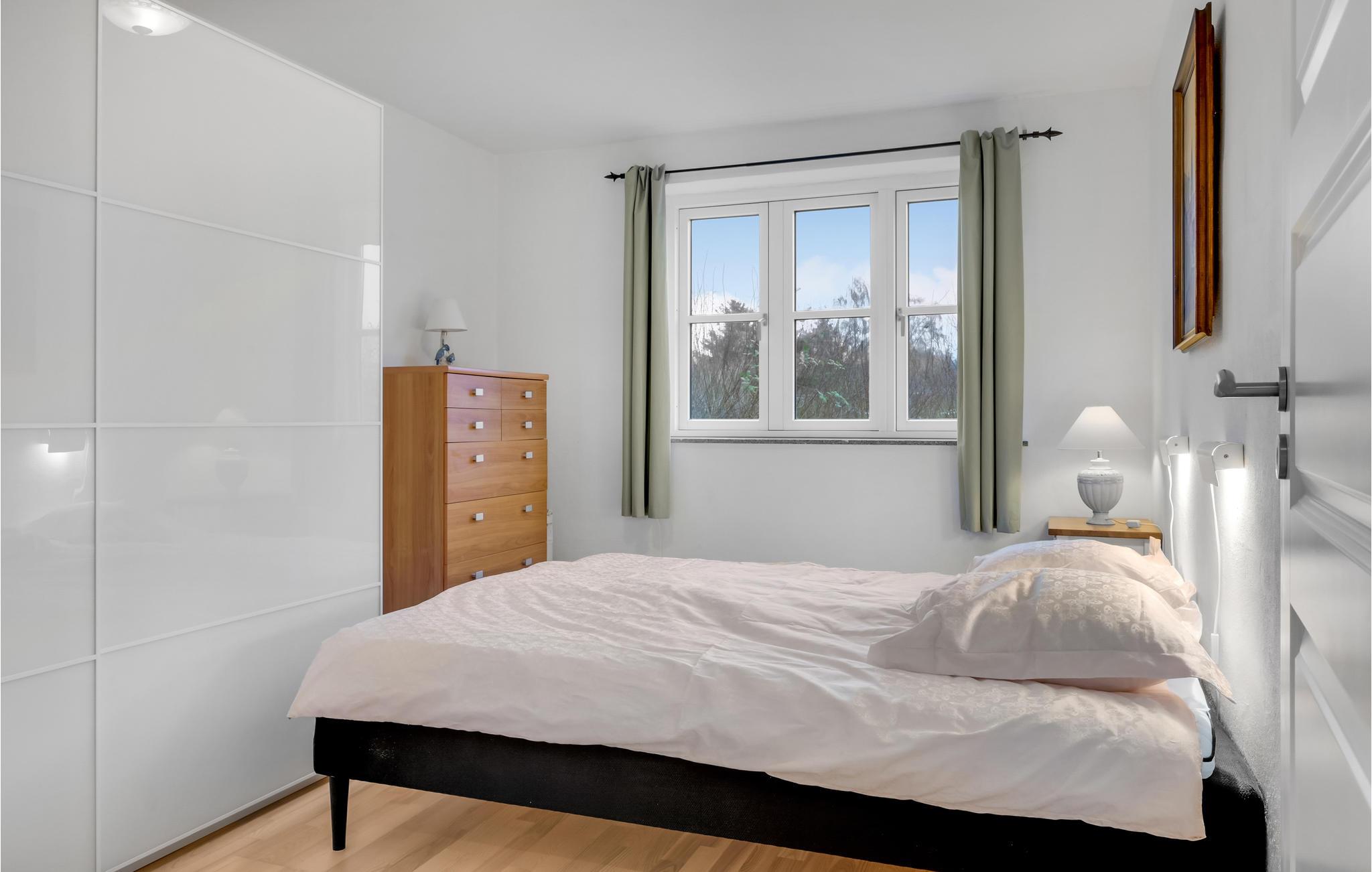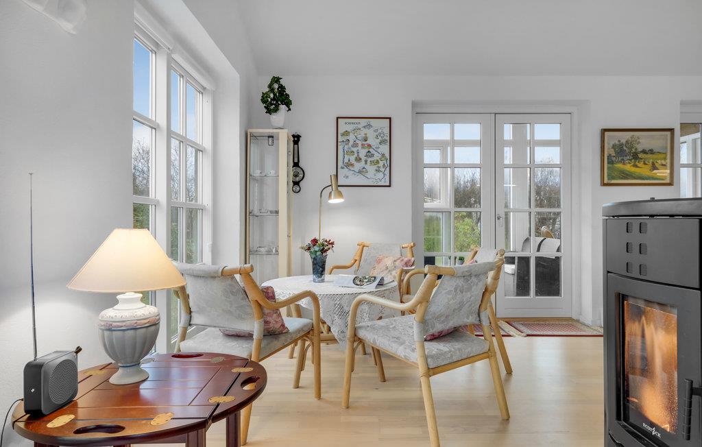 Hyggeligt og moderne sommerhus, hvor lyset strømmer ind fra de mange store vinduespartier. Hyg jer i de bløde, indbydende møbler med en god bog og nyd den knitrende ild i brændeovnen. Den åbne indretning lader jer nyde hinandens selskab mens nogle tilbereder feriens måltider og andre slapper af og nyder udsigten over det grønne landskab med kig til fjorden.