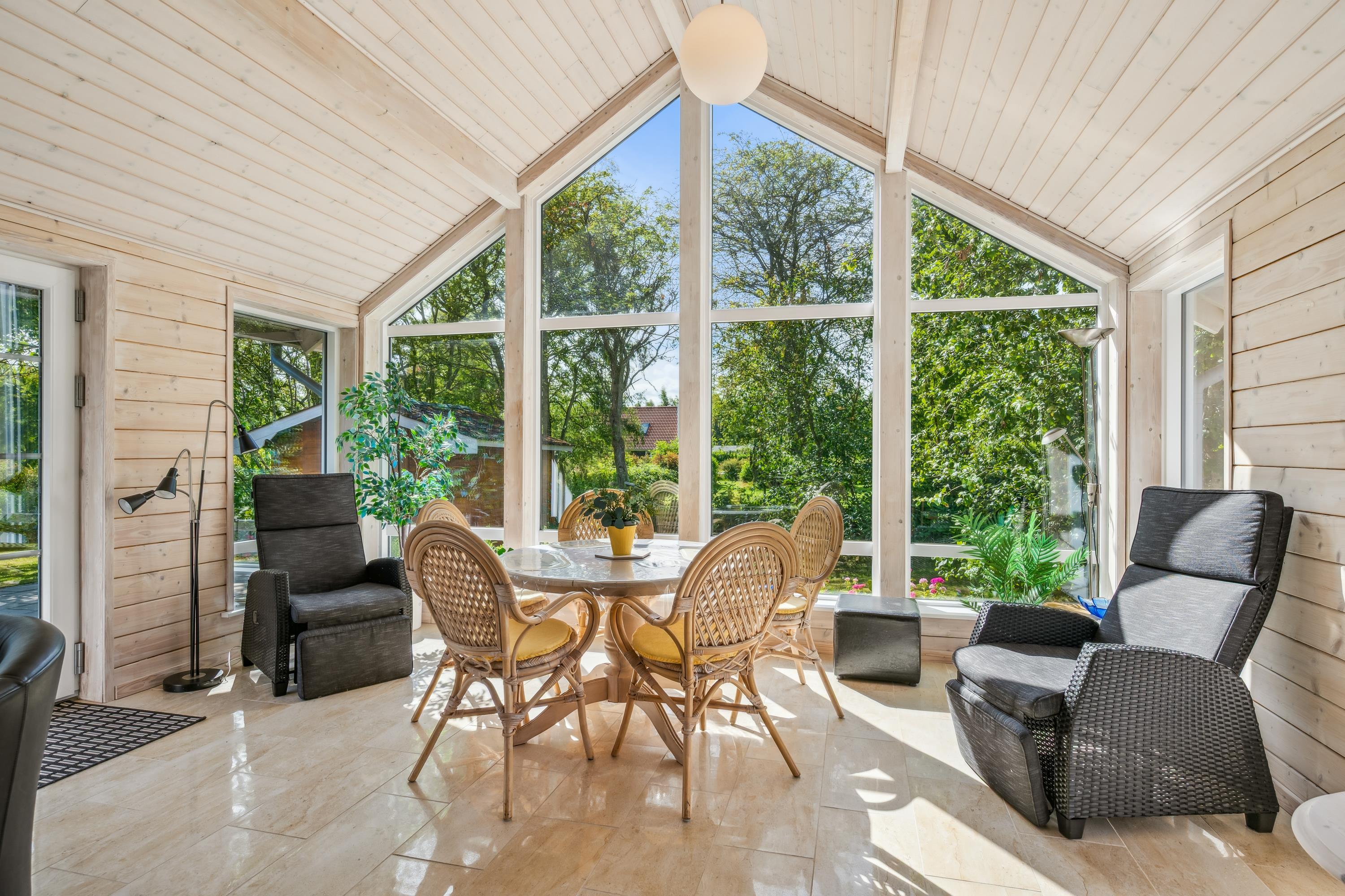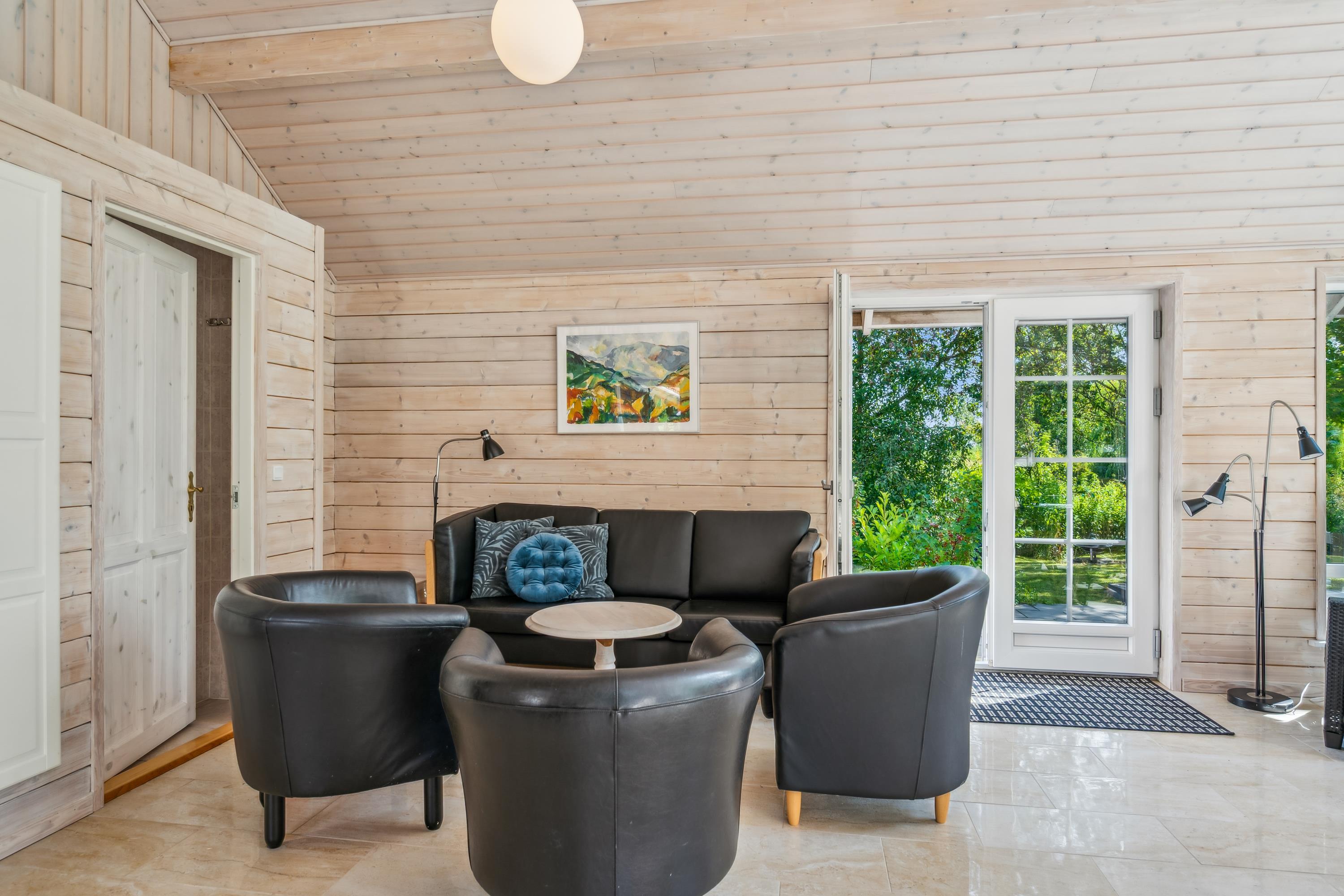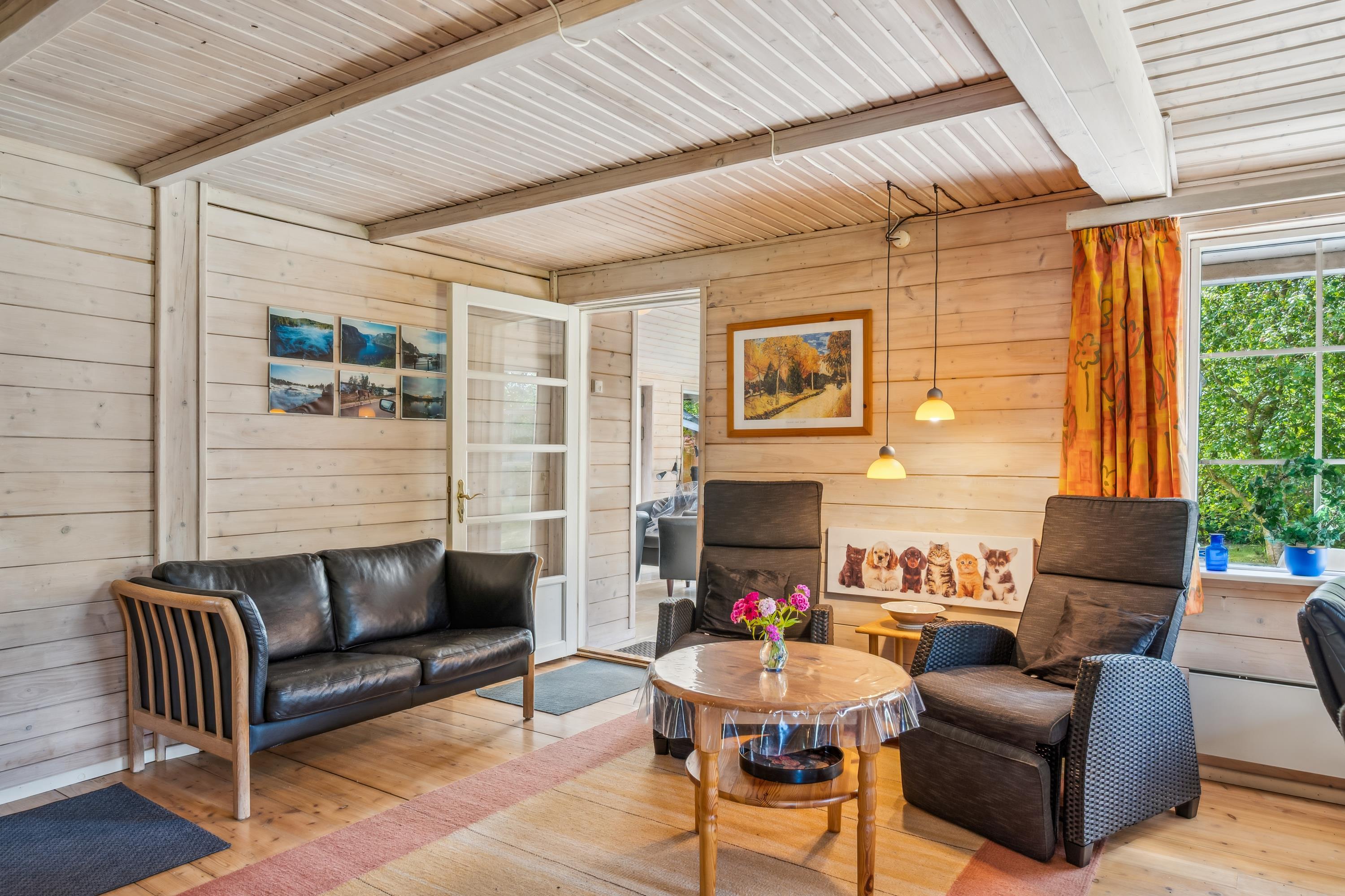 Stort og renoveret bjælkehus tæt på børnevenlig strand ved Sjørup med havestue, sauna og stor terrasse.