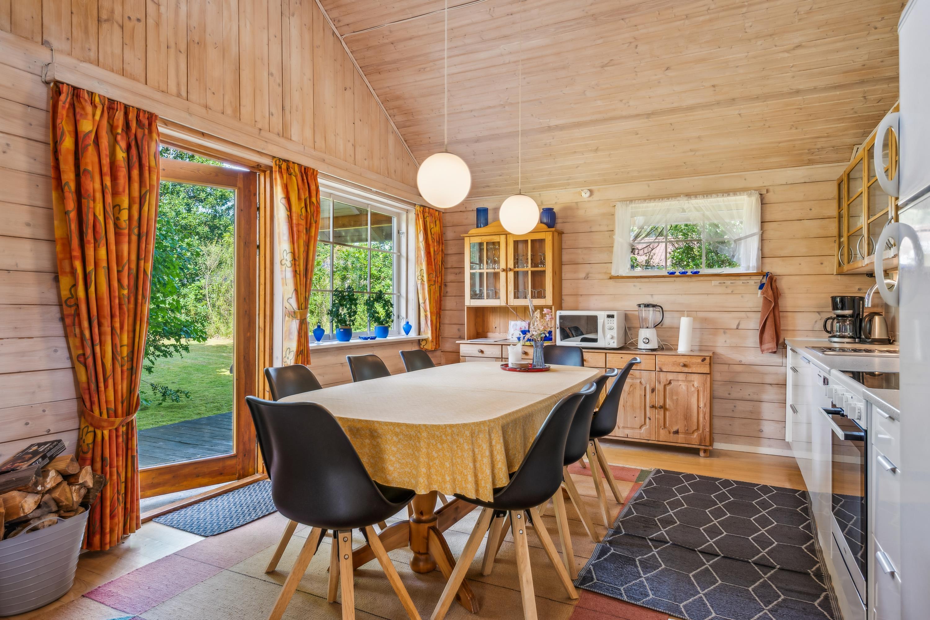 Flot bjælkehus tæt på børnevenlig strand